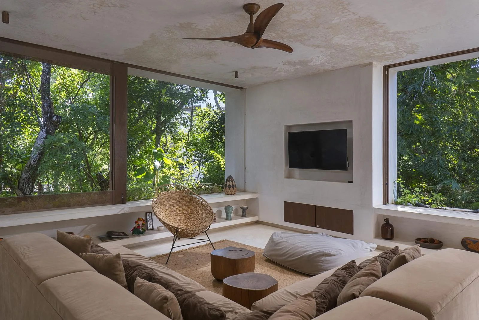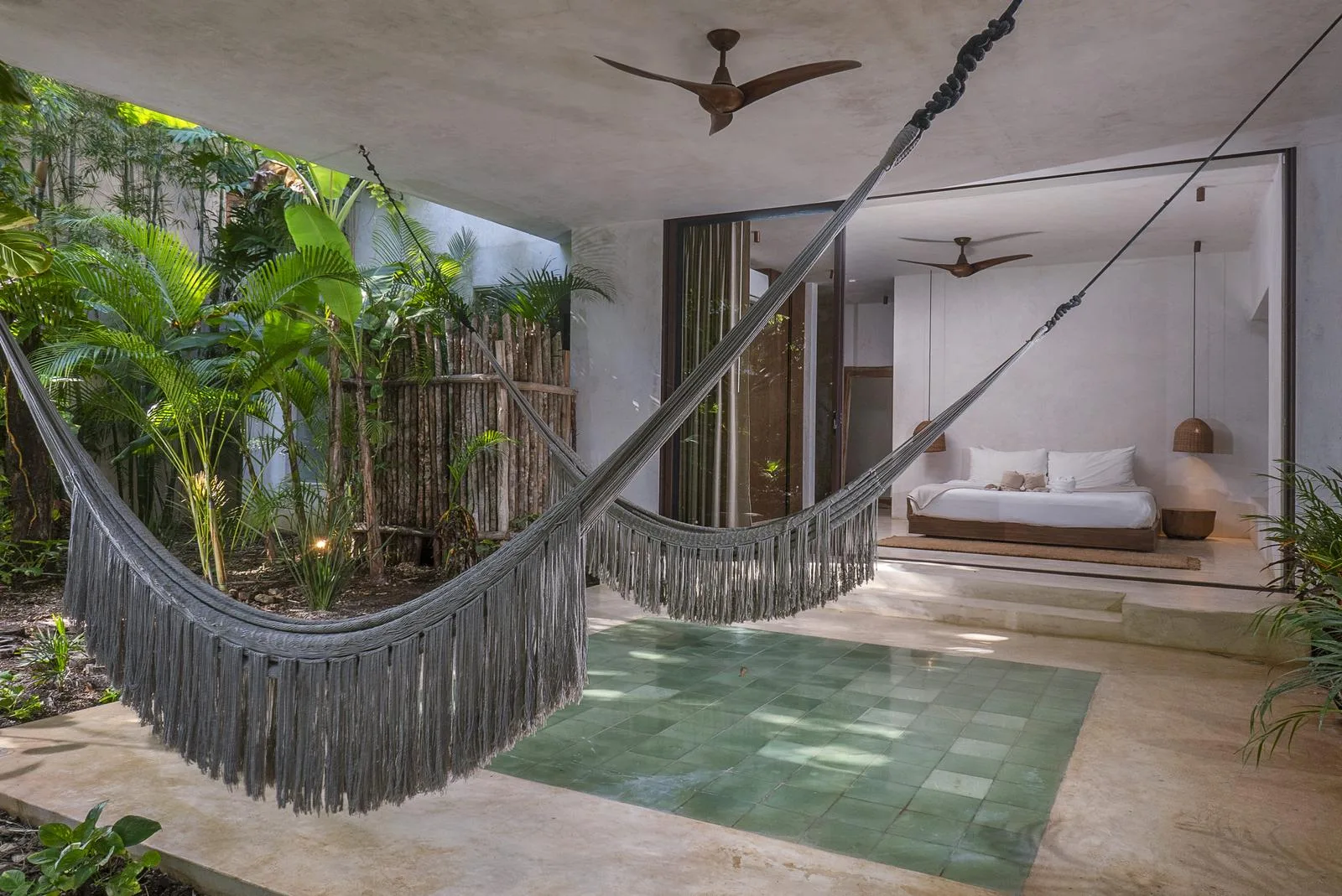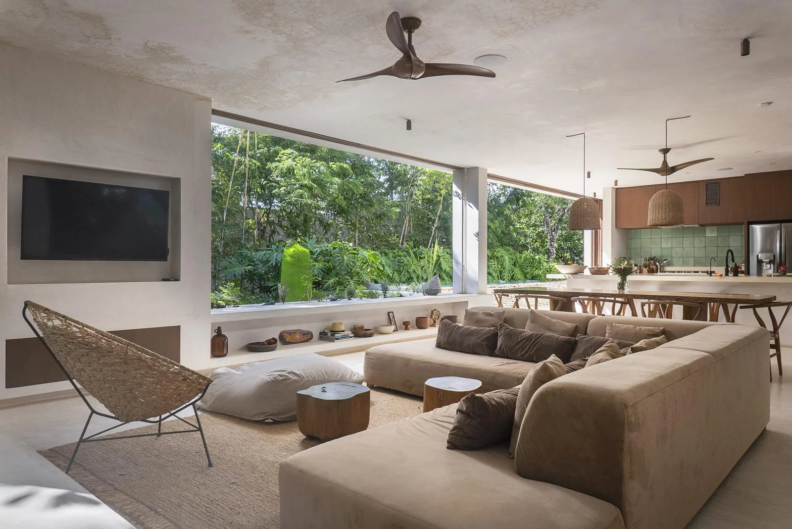This villa combines contemporary architectural design with natural elements from the region. It is situated within the gated community of Aldea Zama in Tulum.