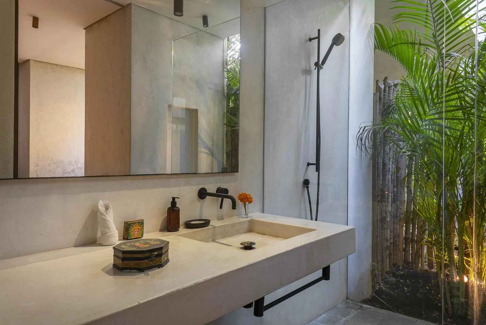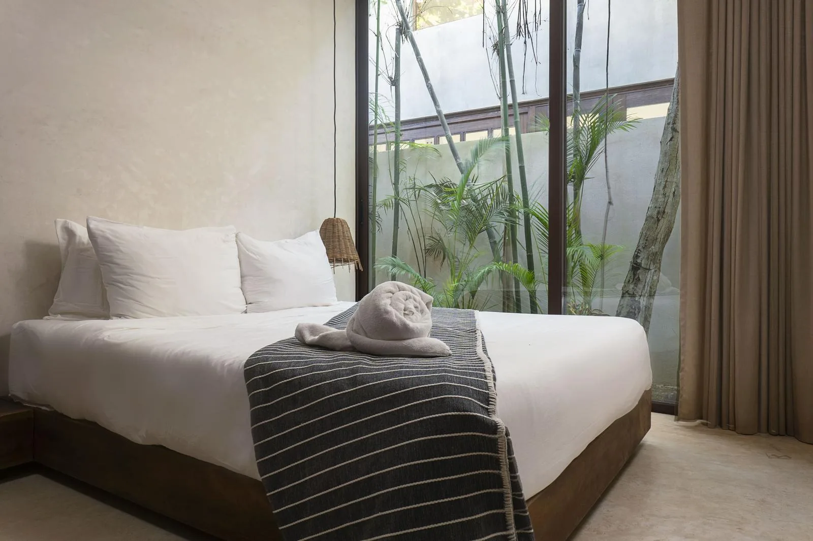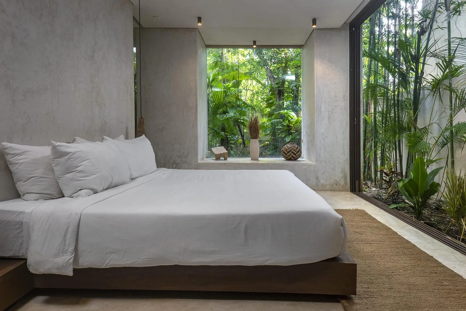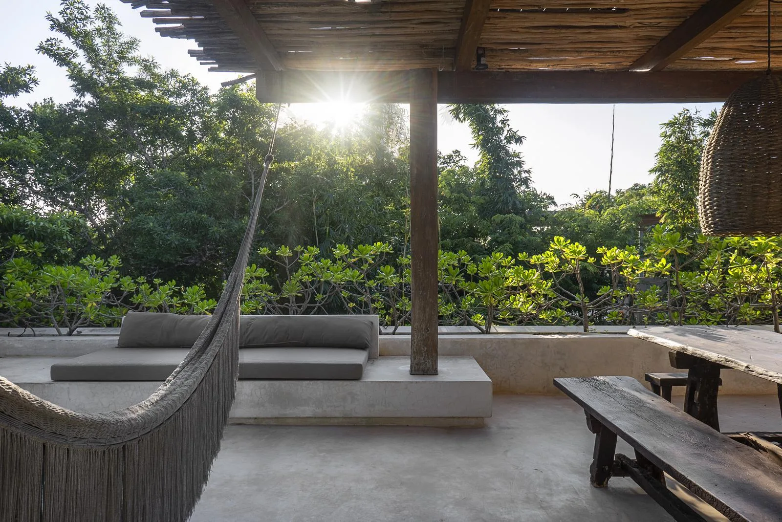 This villa combines contemporary architectural design with natural elements from the region. It is situated within the gated community of Aldea Zama in Tulum.