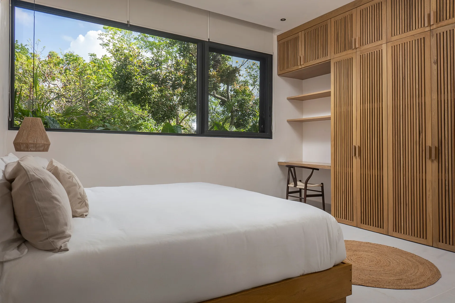 The property encompasses two independent lots totaling 1, 142 square meters, ensuring privacy and perpetual jungle views. The residence itself offers 410. 85 square meters of constructed space with a layout of five bedrooms and five and a half bathrooms. A ground-floor master suite includes a designer French tub and floor-to-ceiling views.