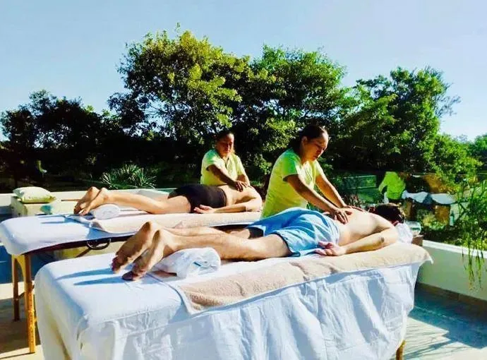 Additional amenities include a spa. The property is decorated with local crafts and quality construction materials.