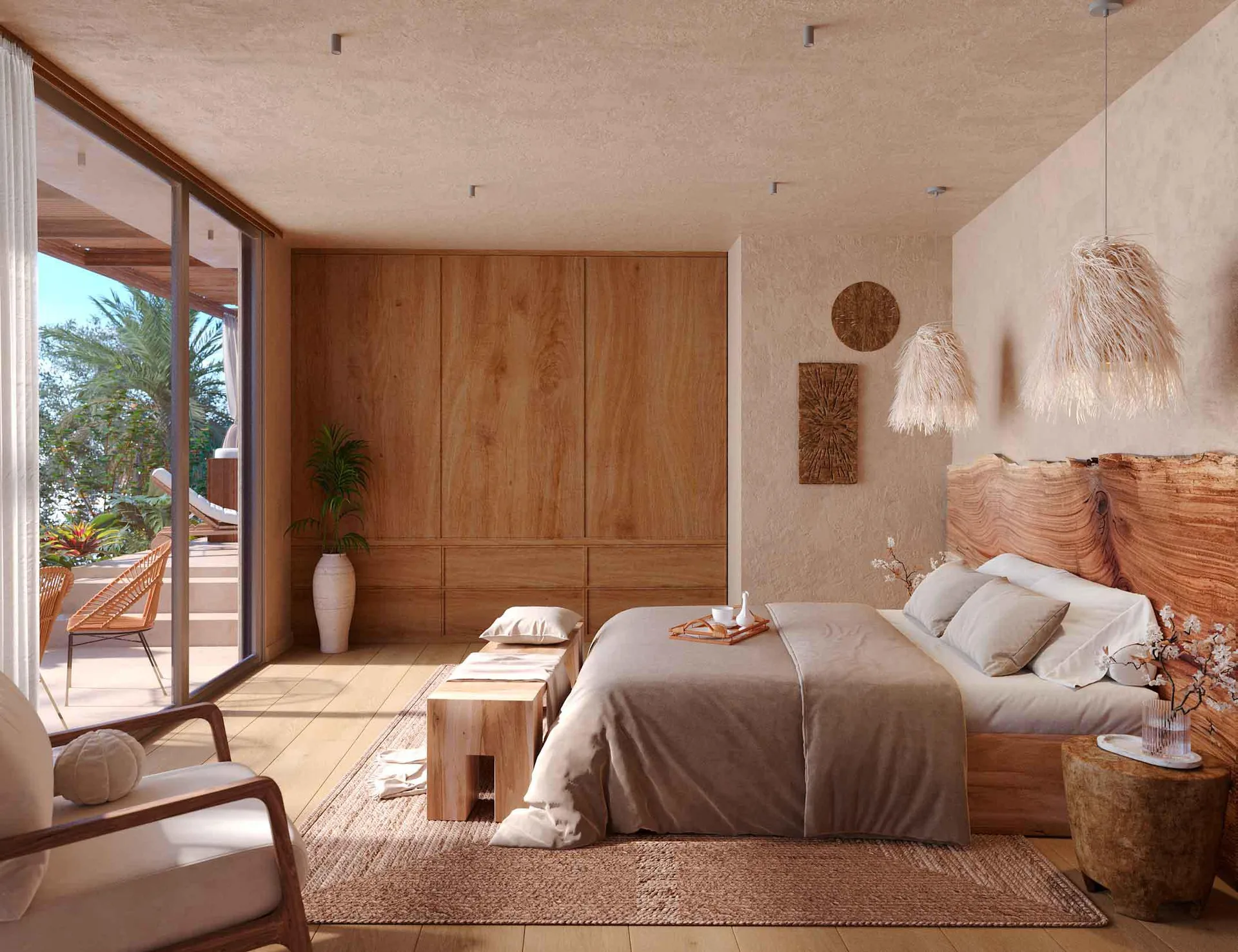 The architecture evokes historic elegance and utilizes natural materials that celebrate the local environment. Each residence is a harmonious retreat where refined living meets the serenity of the jungle.