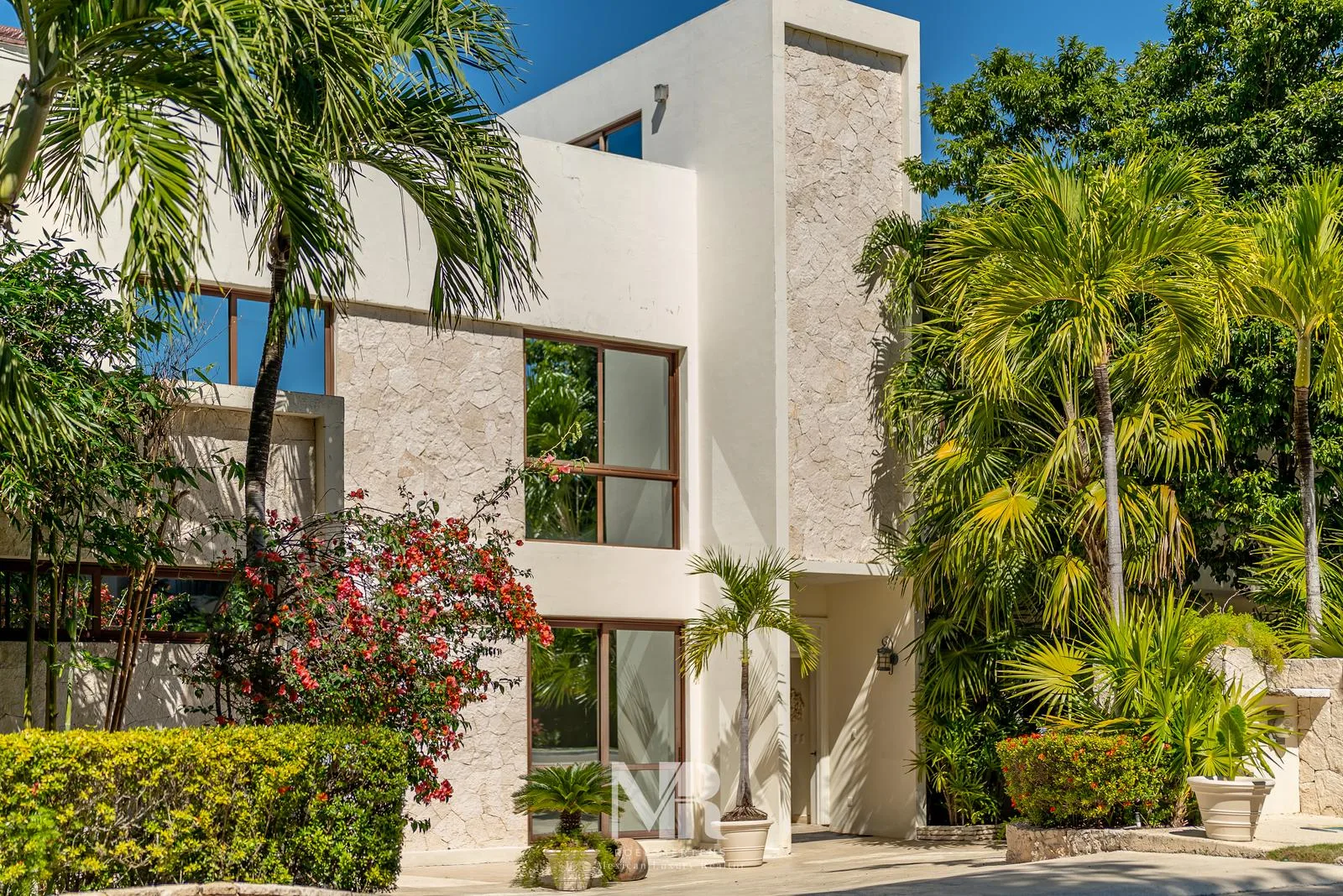 The villa consists of a main house and a guest house, constructed on a double lot at the end of a cul-de-sac with a fairway of the PGA golf course within Tulum Country Club as a backdrop. Surrounded by lush vegetation, the property offers tropical privacy with a backyard and pool. Its architectural style is contemporary, while the interior design features classic furnishings, lamps, and decor. Both structures share the same style and excellent finishes, with spacious living areas and ceiling heights of approximately 3. 6 meters.
