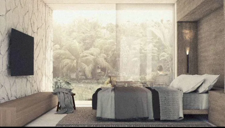 The rooftop terrace offers views of the surrounding jungle and the sea. The community provides access to private lagoons and cenotes.
