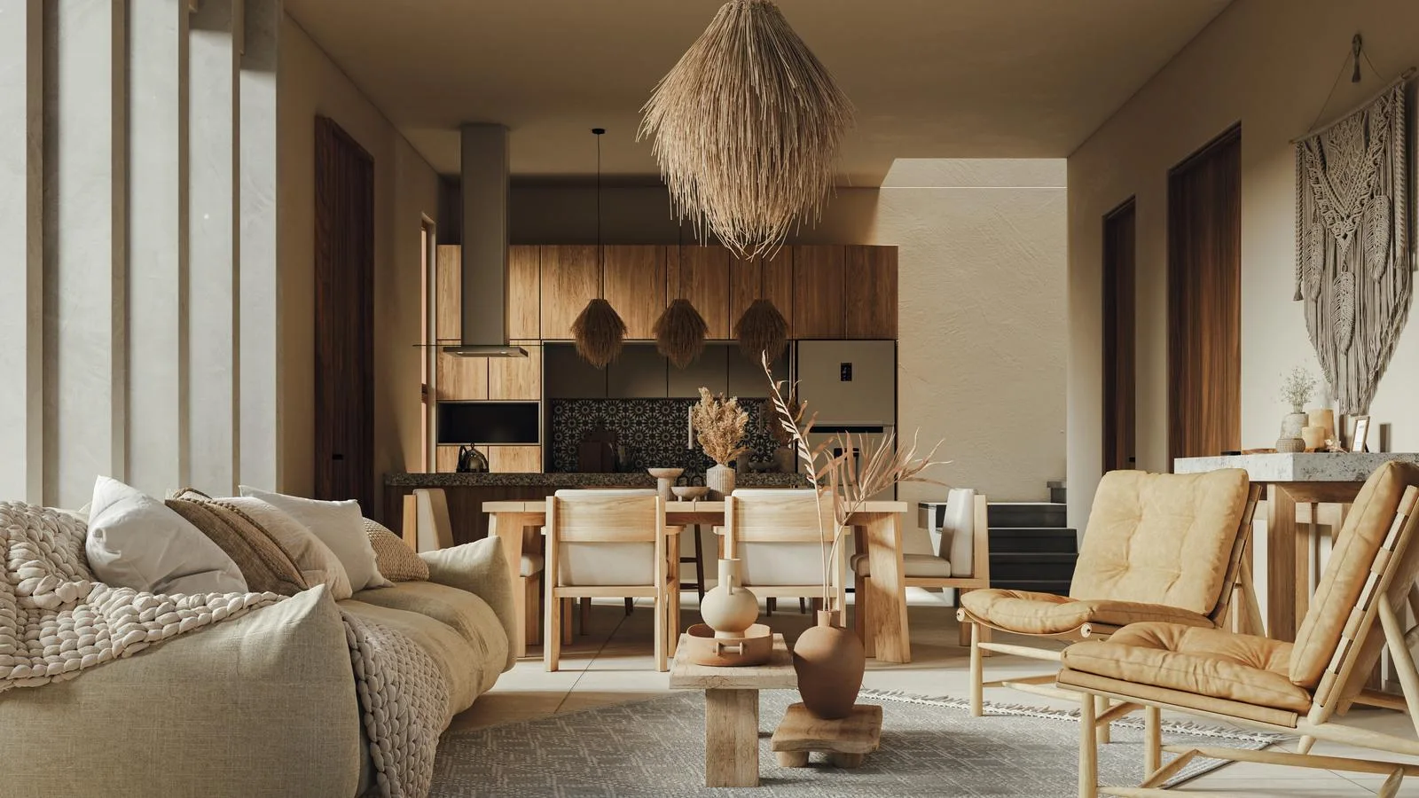 A rooftop garden provides panoramic views, perfect for enjoying sunsets. The contemporary design incorporates organic touches that reflect the essence of Tulum. Open spaces seamlessly integrate indoor and outdoor areas for a unique connection with nature.
