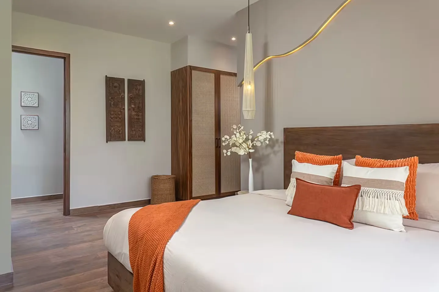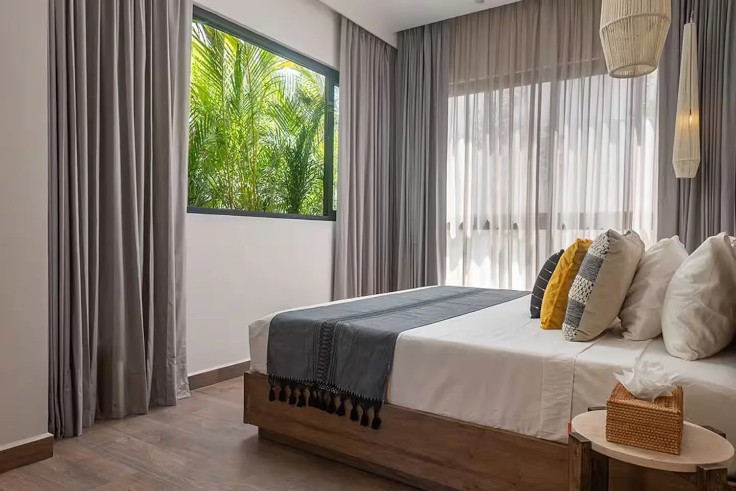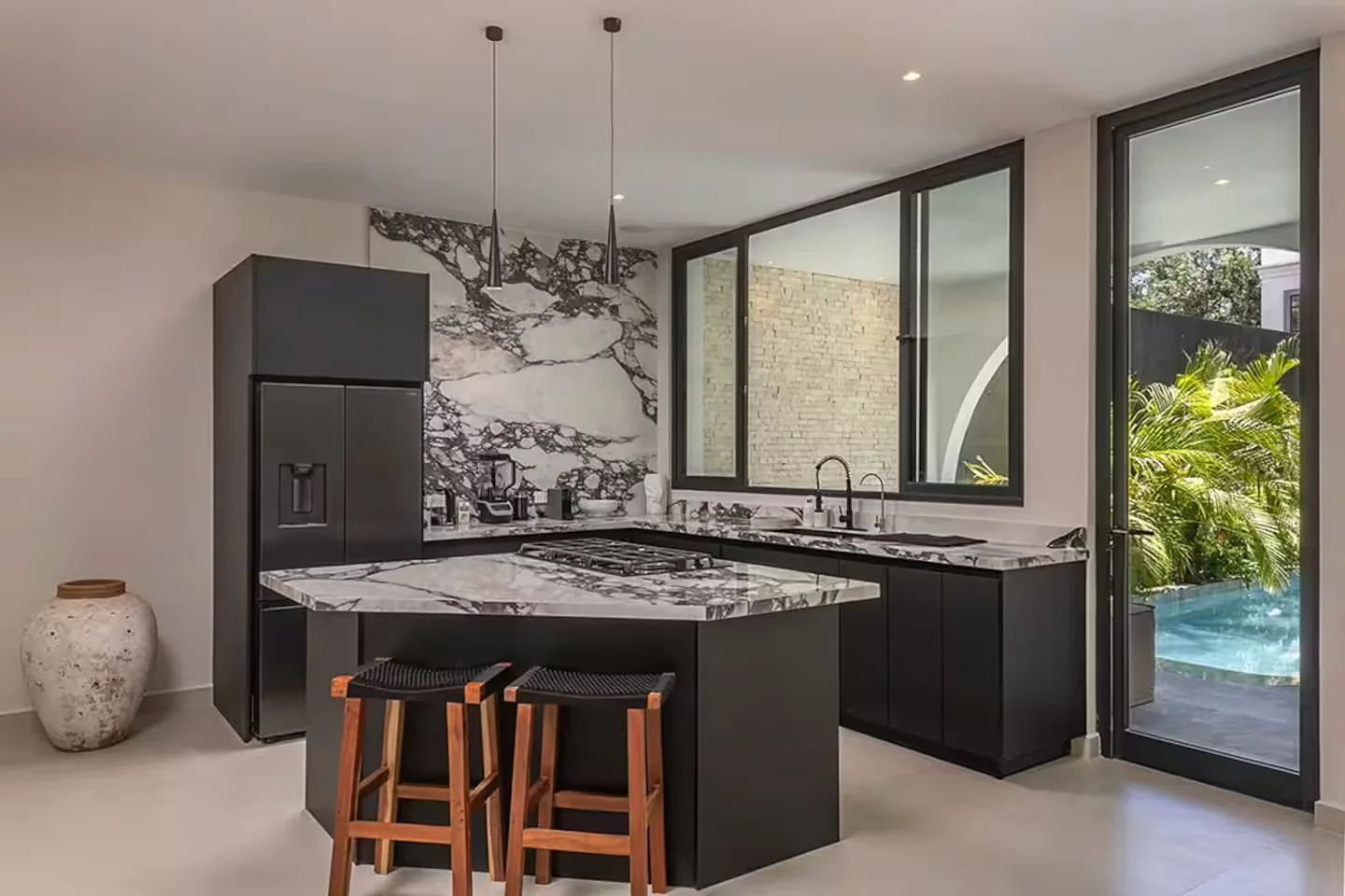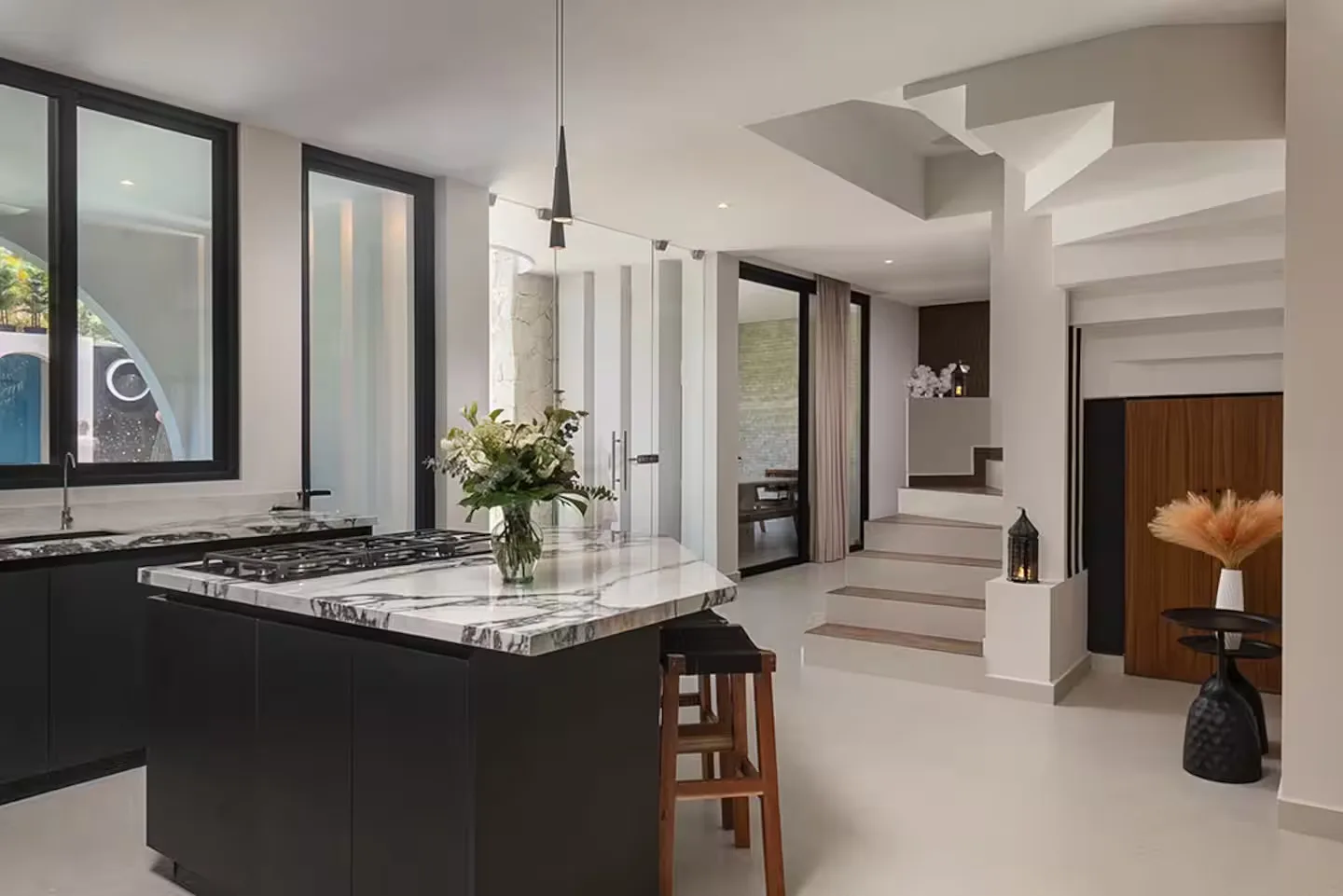 Each bedroom includes its own ensuite bathroom, a king-size bed, and ample storage space. The villa is equipped with robust air conditioning, high-speed fiber optic internet with Starlink backup, and a whole-house generator.