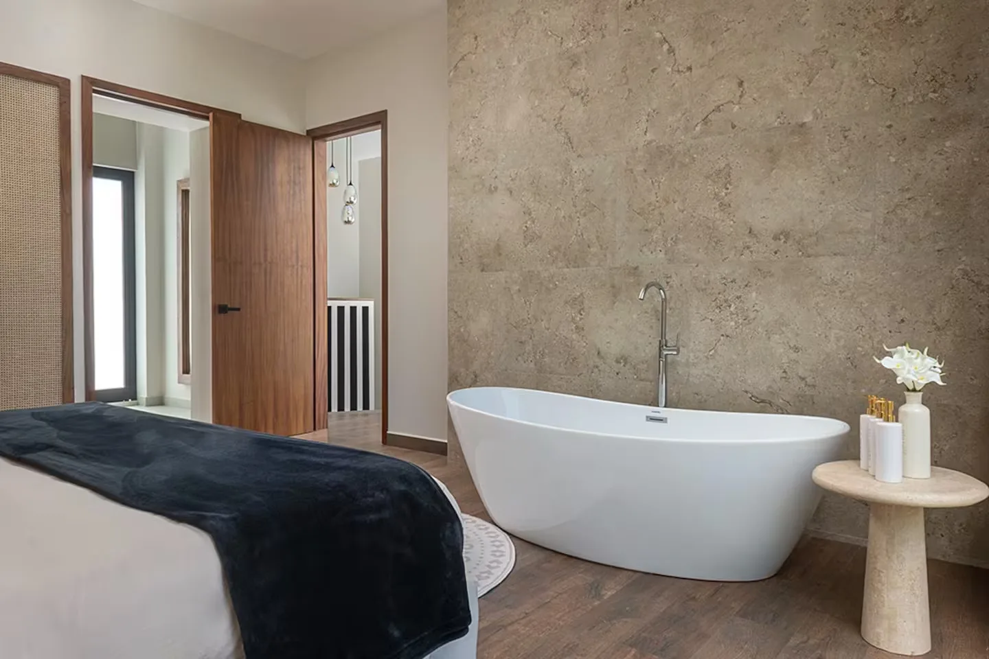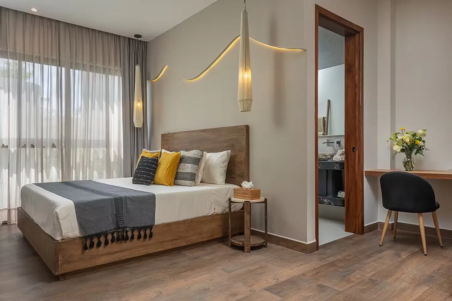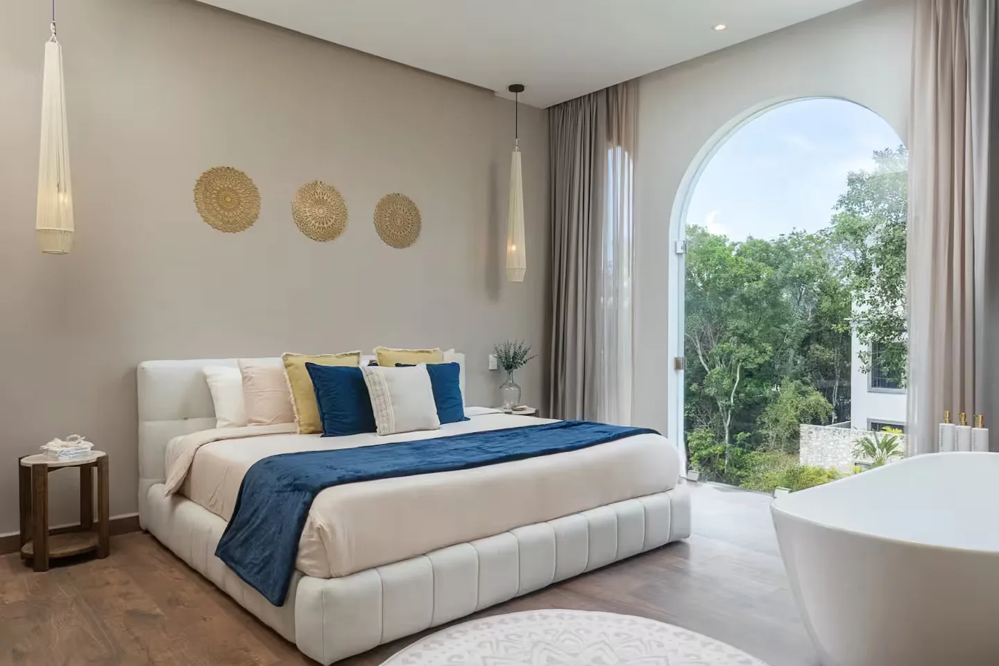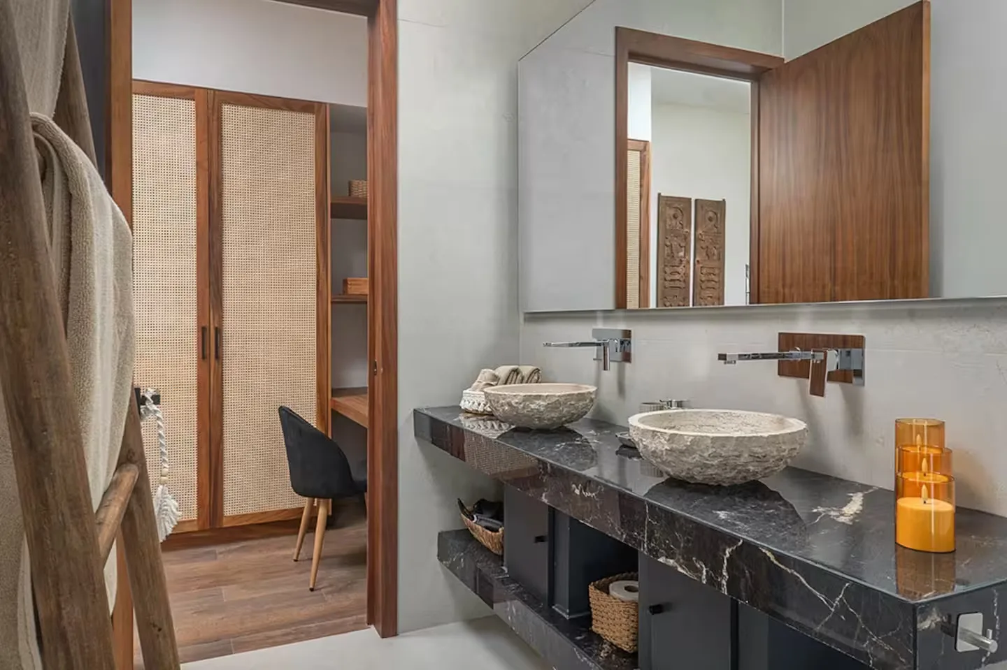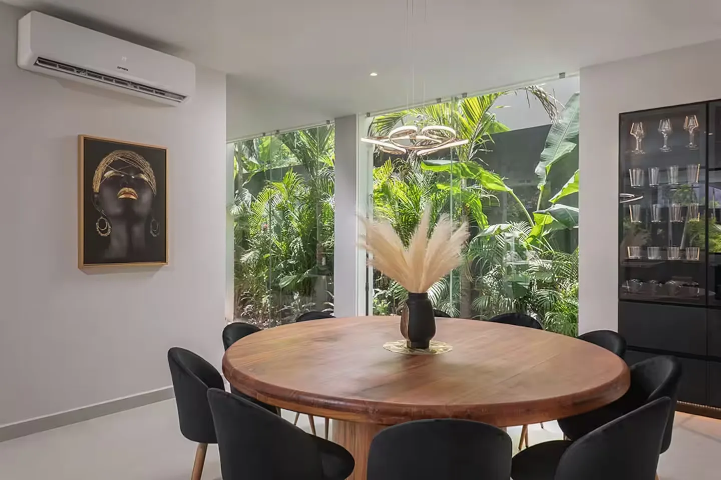 Each bedroom includes its own ensuite bathroom, a king-size bed, and ample storage space. The villa is equipped with robust air conditioning, high-speed fiber optic internet with Starlink backup, and a whole-house generator.