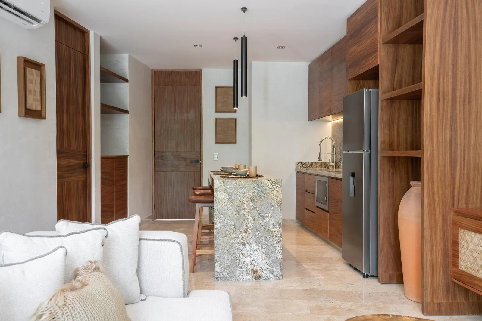 This project is situated in the Aldea Zamá area of Tulum, offering direct access to Kukulcán Avenue, which provides connectivity to the hotel zone and the Caribbean beaches.