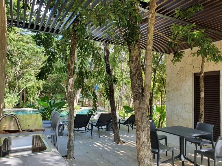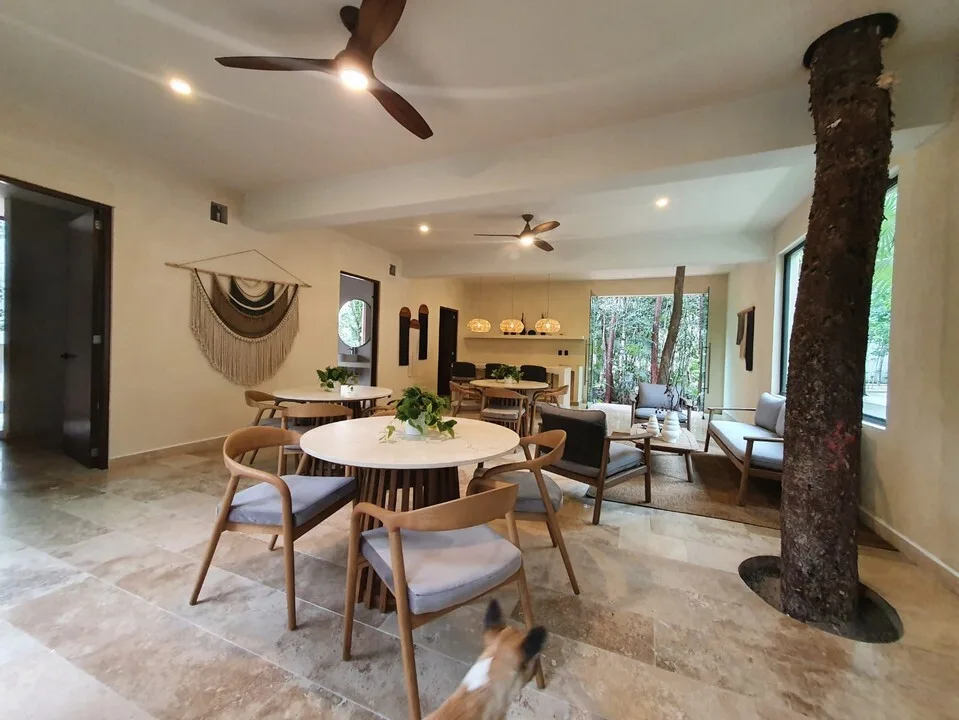 The location in Tulum offers proximity to various attractions: five minutes to the Hotel Zone, less than ten minutes to the beach, five minutes to the Tulum Archaeological Zone, 150 meters from the Cancún-Tulum highway, five minutes to supermarkets and services, and around 60 minutes from the international airport.