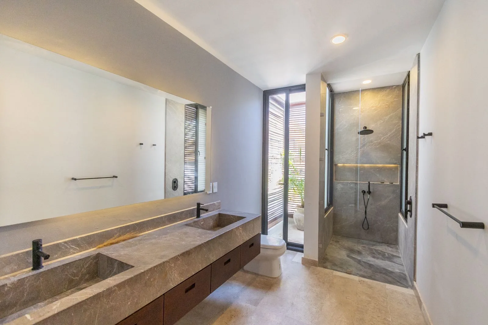 The property is located in a tranquil area, close to cafes, restaurants, and shops. It provides practical access to downtown Tulum, approximately a 10-minute drive away, and the beaches of the hotel zone, approximately 15 to 20 minutes away.