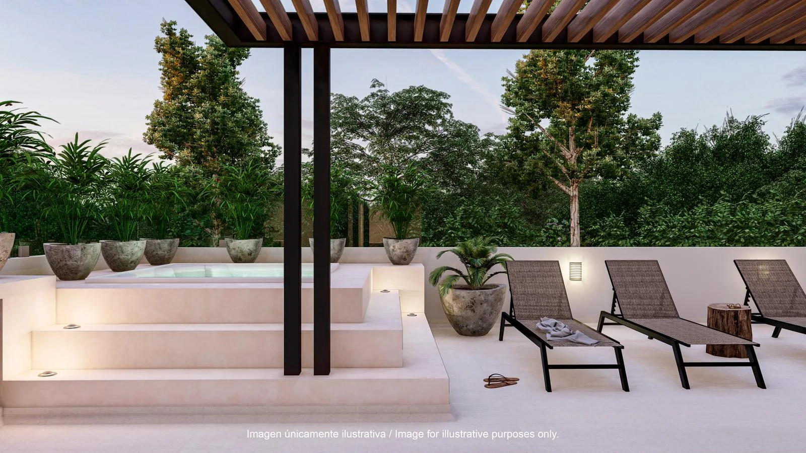 This villa is located within Tulum Country Club. The property offers three bedrooms, four bathrooms, a private pool, a rooftop with a jacuzzi, and a total of 419. 65 square meters of interior and exterior space.