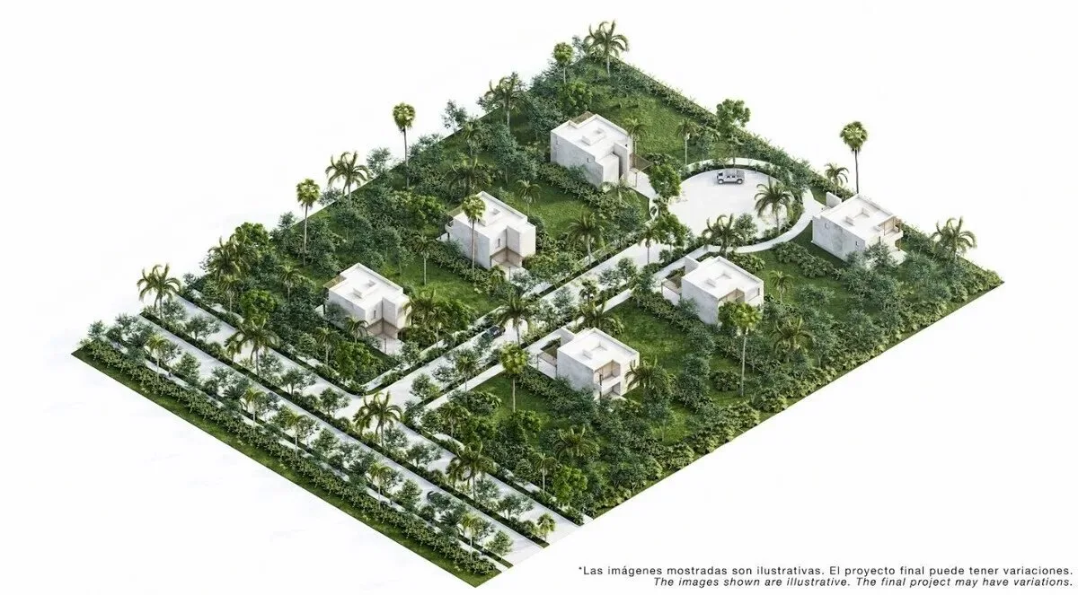 The community is designed for a fulfilling lifestyle and features an internal commercial center for daily needs. A wellness zone includes natural cenotes, a spa, and a gym. A club with concierge service and beach transportation is provided, along with a gastronomic club and a pet park.