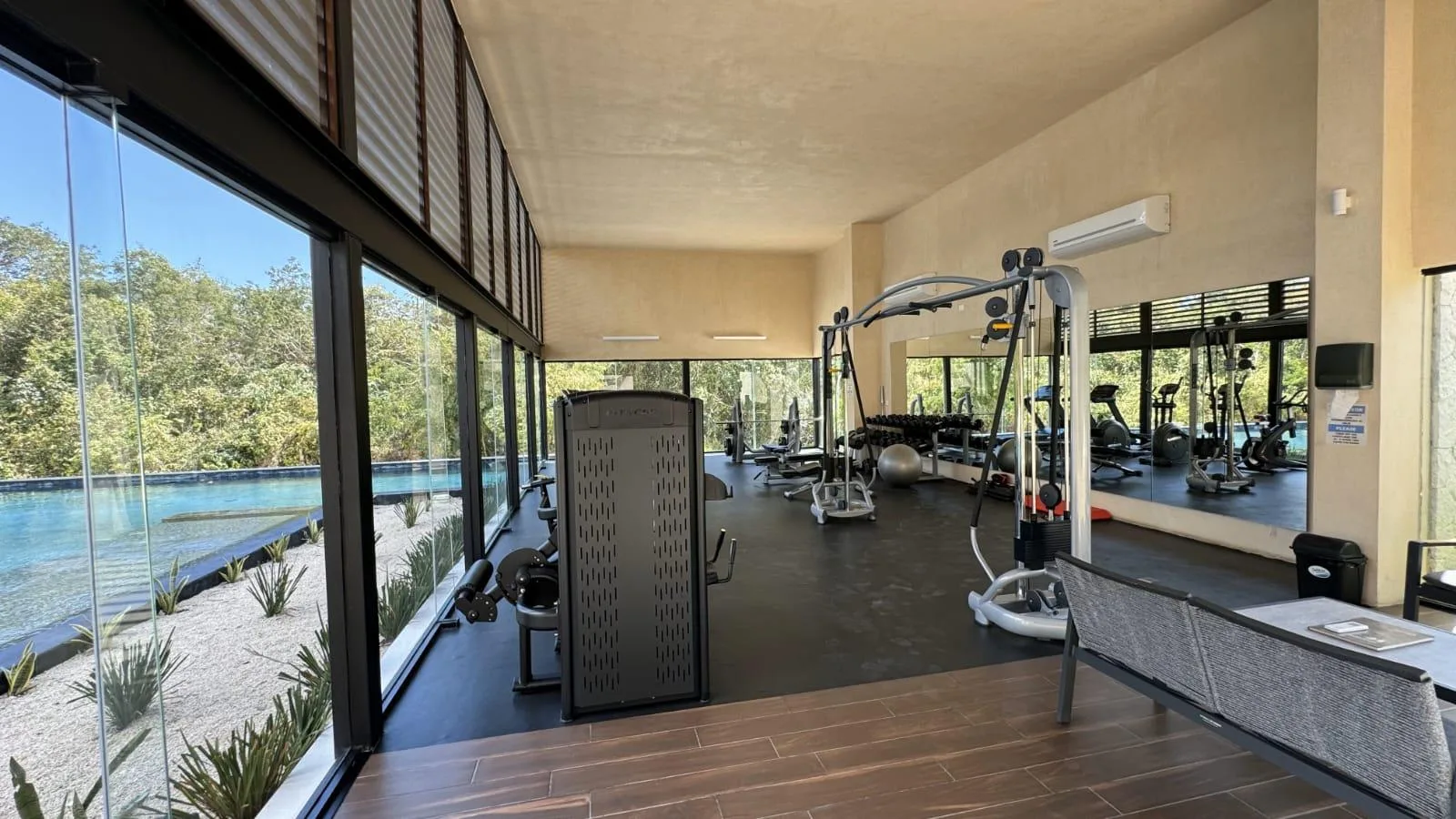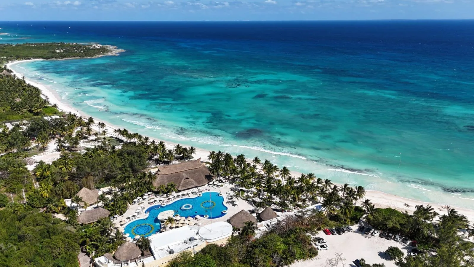 The property is in the Xpu-Ha area, approximately 15 minutes south of Playa del Carmen and 20 minutes from Tulum, situated between the two cities near the Maya Train route. The nearby Xpu-Ha beach is 4 kilometers long. Residents have access to a private beach club located approximately 1 kilometer away, accessible via a dedicated tunnel for golf carts or bicycles. The beach club offers a restaurant, bar, sun loungers, and a swimming pool.