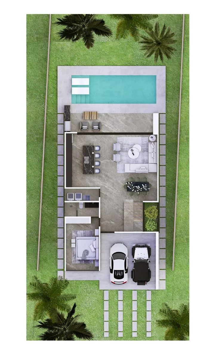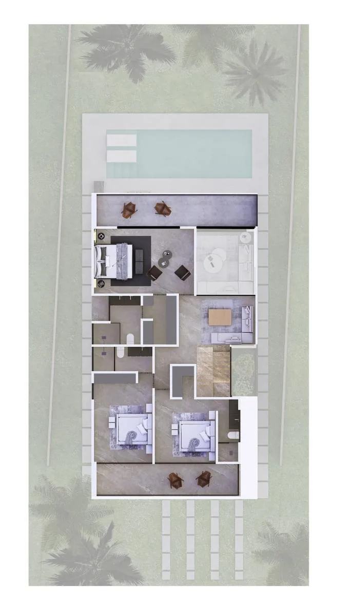 The property is situated approximately 15 minutes south of Playa del Carmen and 20 minutes from Tulum, near the route of the Maya Train. Xpu-Ha Beach is approximately four kilometers long.