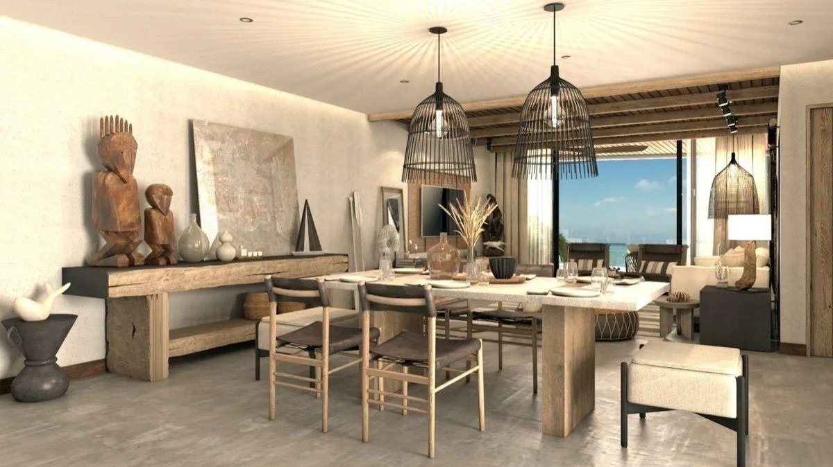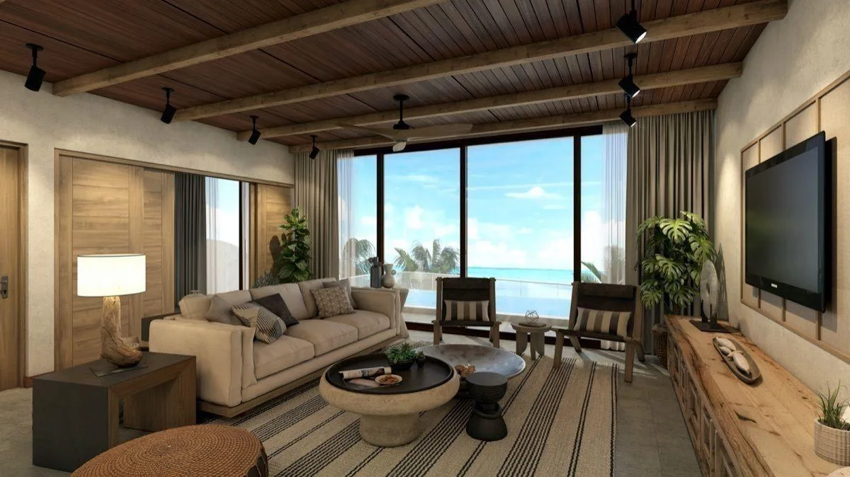 The property offers luxurious studios, one-bedroom, and two-bedroom condos and penthouses right on the beach. Layouts include lock-off units for additional occupancy. Residences are designed with spacious open floor plans, natural materials, and indoor-outdoor living spaces. Units feature tile floors and high-quality, durable finishes. Penthouse units offer premium ocean views and include private sun decks with glass infinity pools.