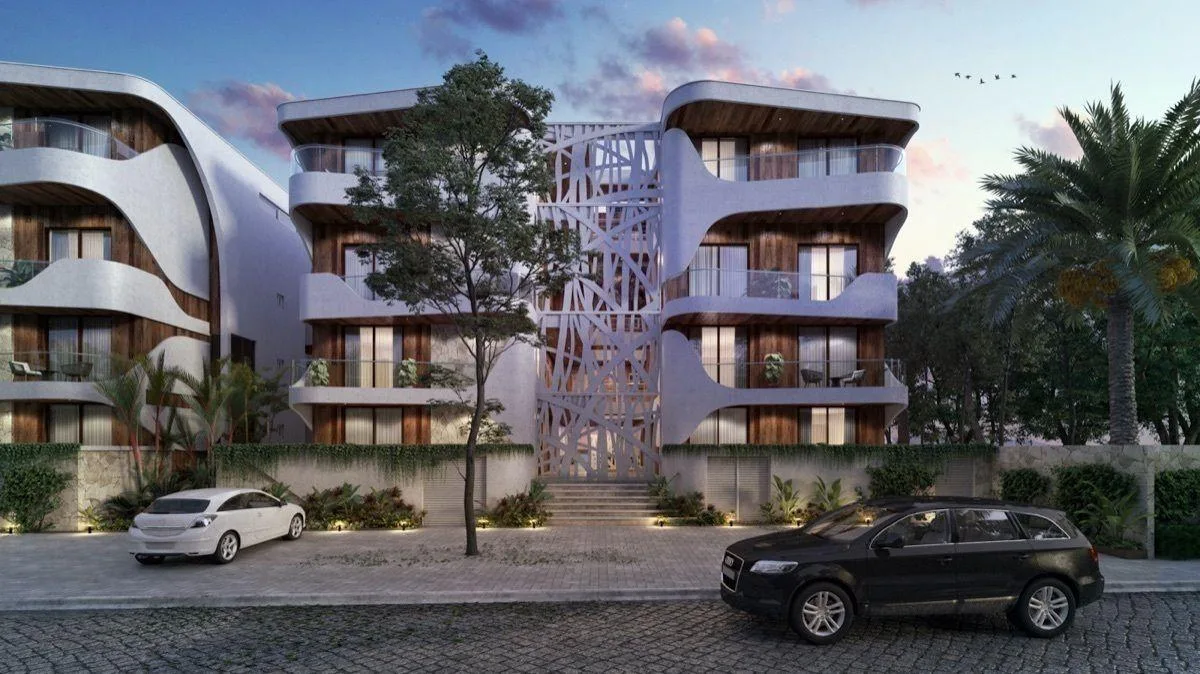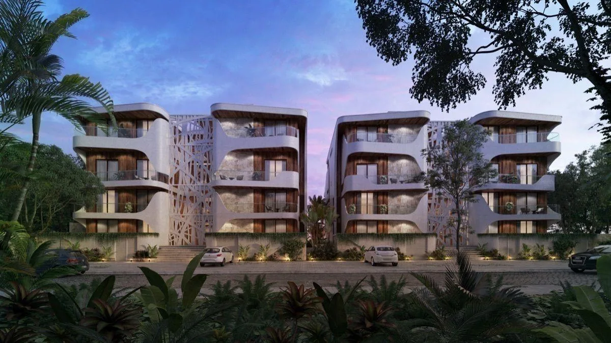 This condominium development is located on the beachfront of Tankah Bay, northeast of Tulum and near Mayan ruins. The complex is surrounded by white sand beaches and clear turquoise Caribbean waters. The area offers proximity to the ruins of Tulum and Coba, as well as numerous cenotes scattered throughout the jungle. The location is approximately a 45-minute drive from Playa del Carmen and 90 minutes from the airport.