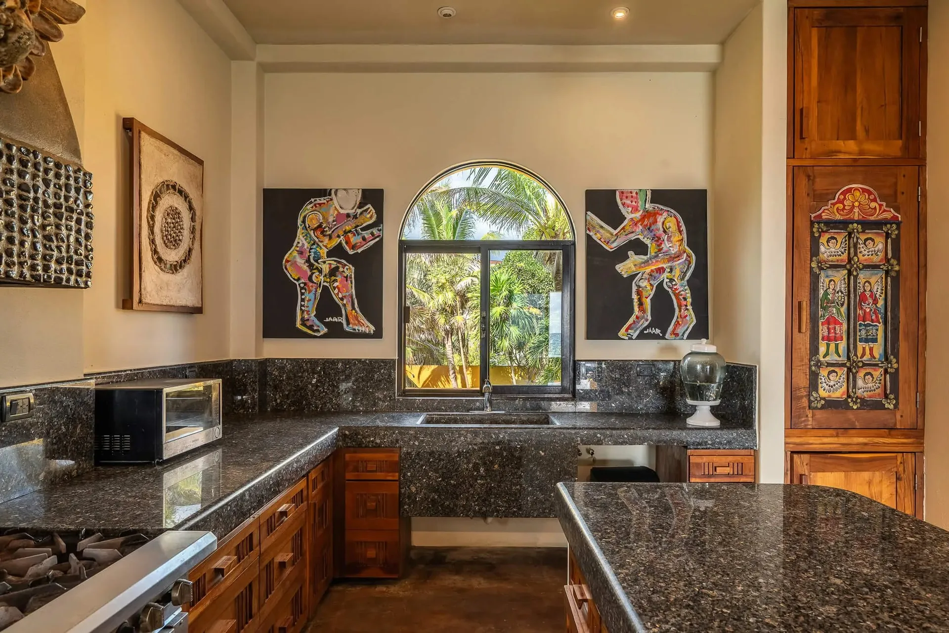 The villa is located in the Riviera Maya, near Akumal, which is known for quiet bays, soft white sand, and snorkeling with sea turtles. It is close to golf courses, dining options, and the beaches of the Riviera Maya, as well as Playa del Carmen and Tulum.