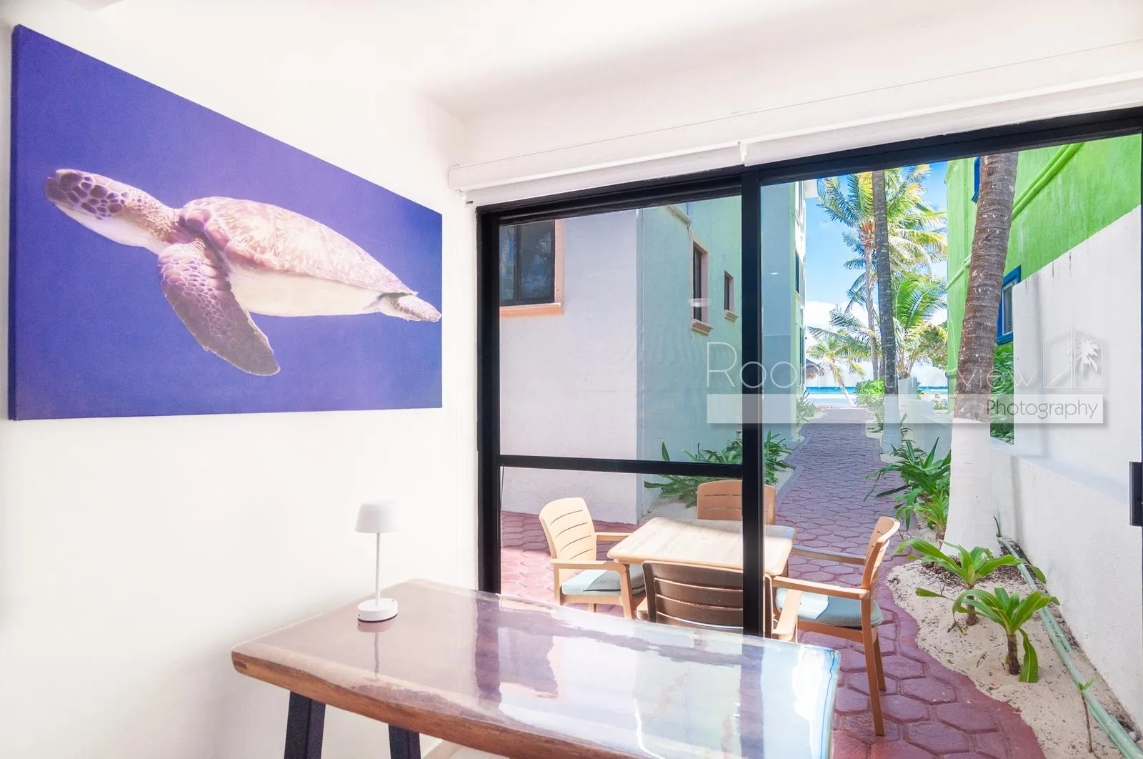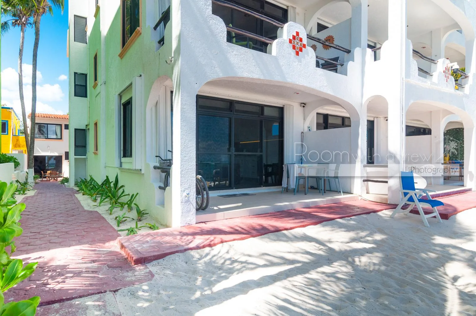 The casita features a terrace with tropical surroundings and bright interiors with air conditioning and ceiling fans. It is fully furnished and turnkey-ready, with storm shutters for added safety. The professionally maintained beachfront complex offers beach access with shaded palapa areas and unassigned parking.
