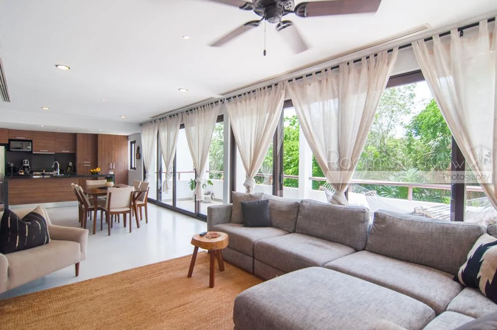 This bright and spacious 2-bedroom, 2-bathroom condo is located inside a secure gated community within the Tulum Country Club. The community is known for its lush, jungle-like surroundings and offers access to amenities including a 27-hole golf course, tennis courts, beach clubs, and restaurants.