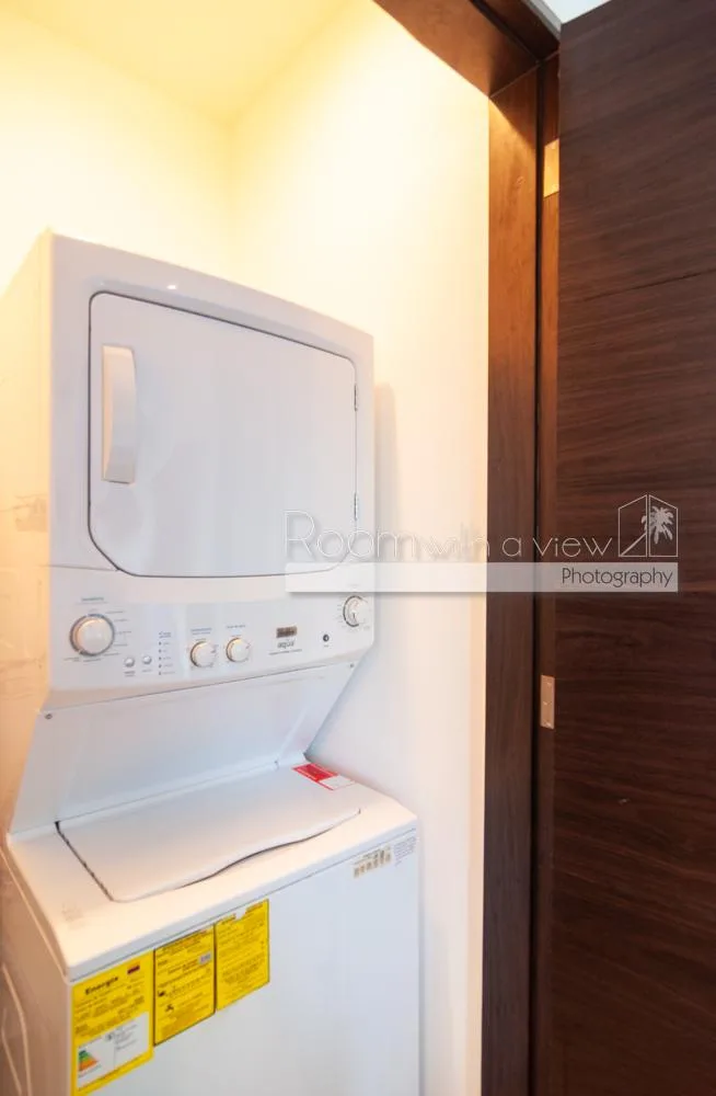 The property is a bright and airy 2-bedroom, 2-bathroom condo with a spacious open layout. It includes an enclosed balcony overlooking the tranquil jungle. The unit has a modern kitchen with an island and premium appliances, a sunlit living room and dining area, and a lock-off bedroom for added flexibility. The condo is furnished and allows pets. It comes with one assigned parking space.