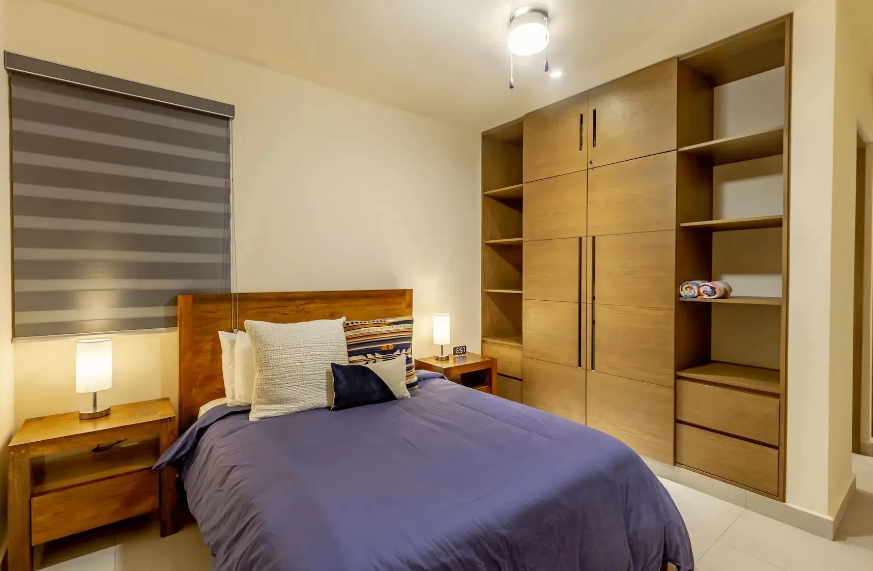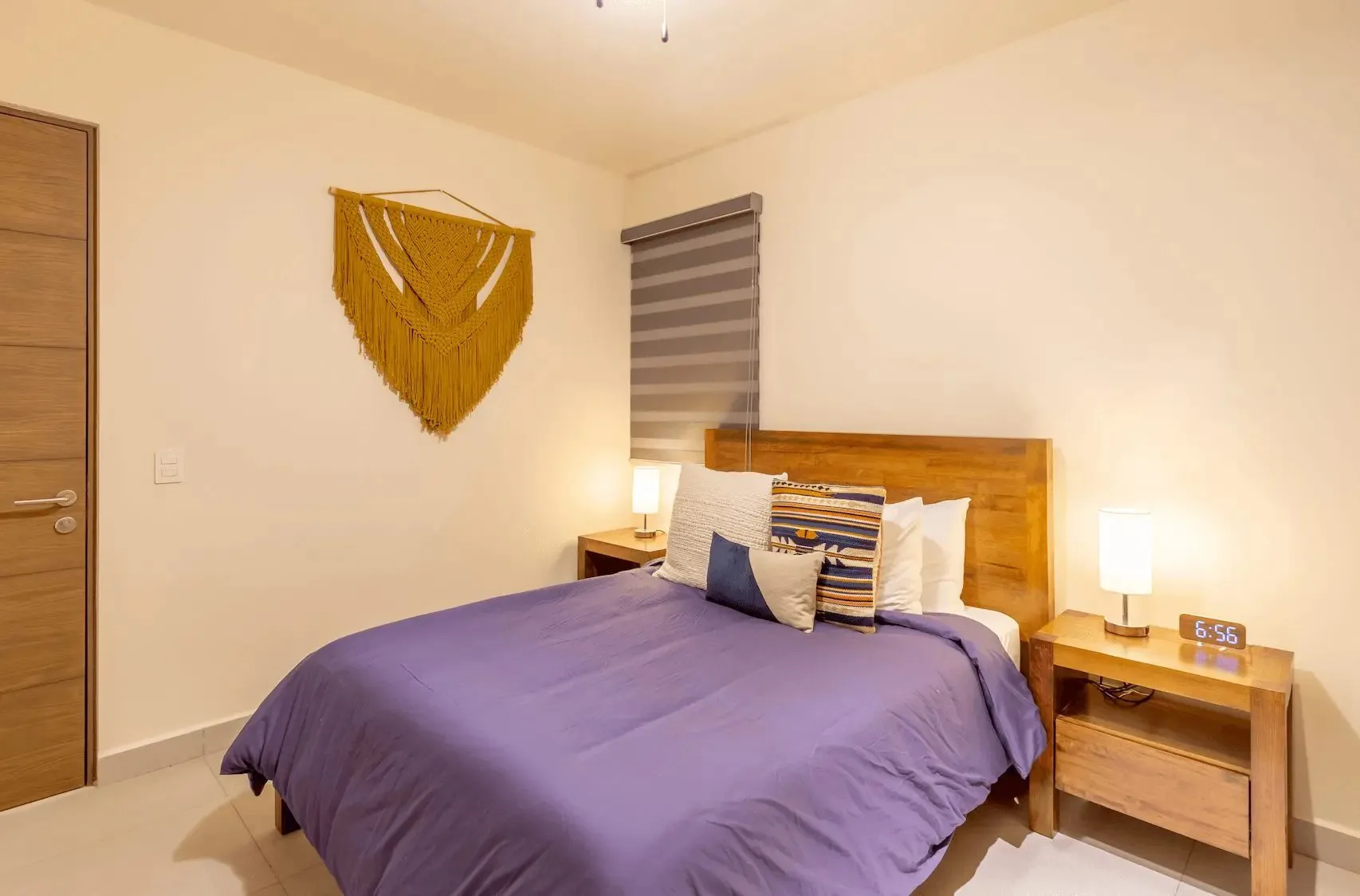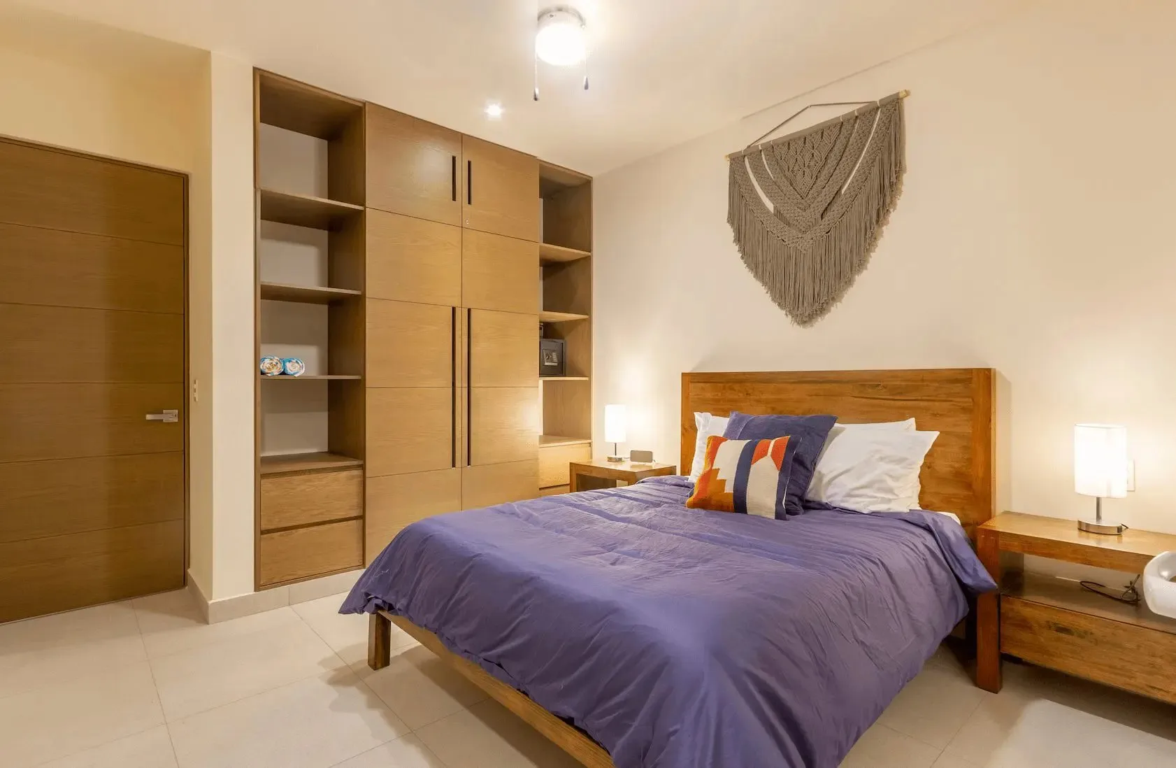 This 2-bedroom, 2-bathroom condo is located at Santamar in Punta Sur, Akumal, just a row back from the sea. It is set within lush greenery, combining jungle serenity with proximity to the Caribbean shoreline.
