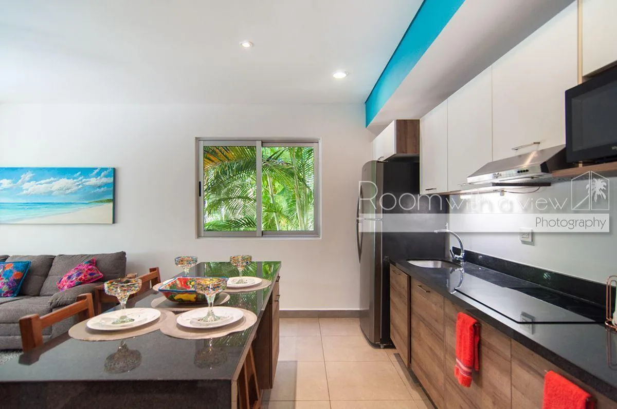 This garden-level condominium is situated within the Grand Sirenis complex in Akumal on the Riviera Maya. The 717-acre resort is surrounded by tropical jungle and features lush green spaces with several cenotes and walking paths. The community offers gated entry and 24-hour security.