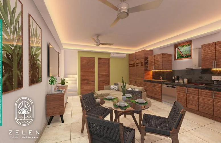 This condo for sale, ideal for vacationing or generating long-term rental income, is located in Akumal just a few meters from the beach. The space is distinguished by its functional design and a perfect terrace for relaxation. It features a swimming pool with views of the surrounding tropical gardens.