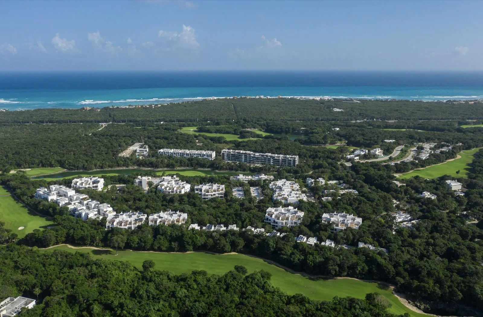 The property is located within Tulum Country Club, offering proximity to the PGA Riviera Maya golf course. The community provides access to two private beach clubs and an optional membership at a wellness center featuring a spa, gym, and restaurant. Additional community features include an international school and a fresh market.