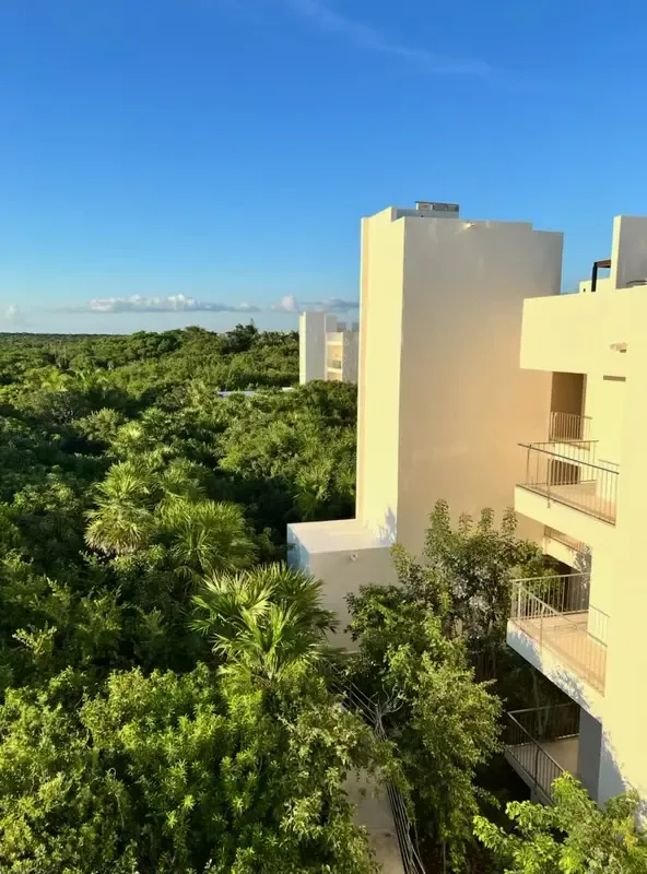 Building amenities include two swimming pools, a walking trail, direct beach access, a beach lounge area, a BBQ area, a gym, a yoga studio, and seven common rooftops with ocean views from each building. Residents also have access to the Jungle Fish Beach Club.