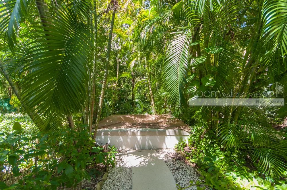 Residents have access to a 27-hole golf course, a shuttle service to Kay Beach, and access to the Jungle Fish Beach Club.