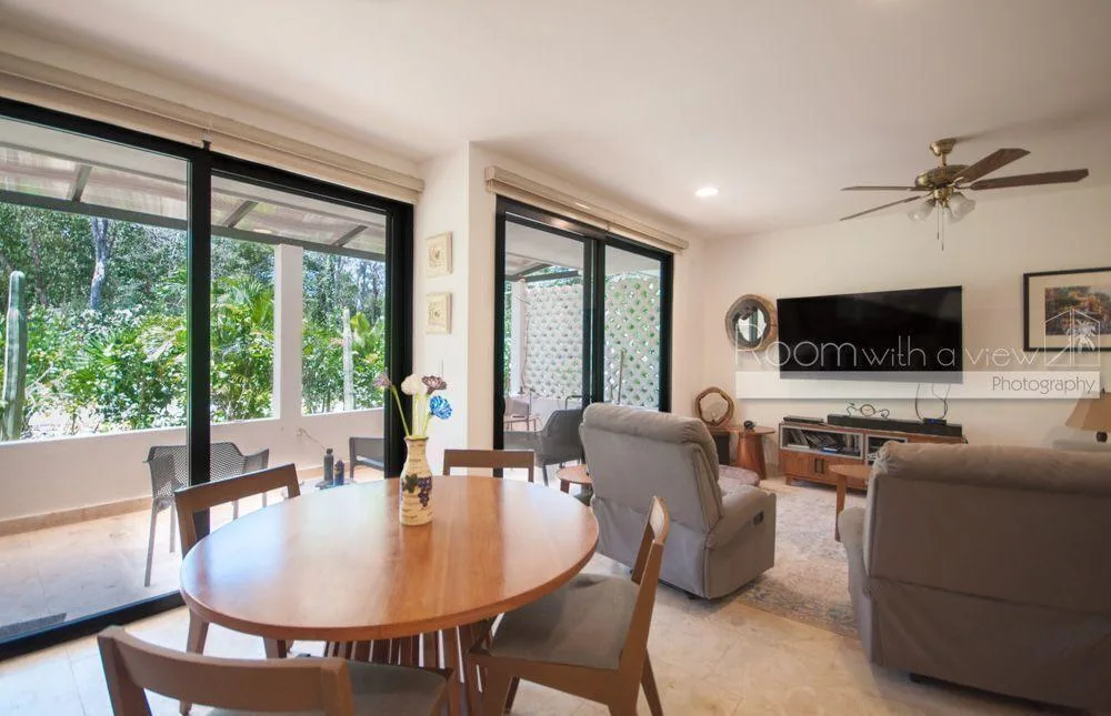 This garden-level condominium for sale is located within the Anah Village area of Akumal. It offers inviting indoor-outdoor spaces within a 717-acre residential resort community, surrounded by world-class golf and located just minutes from the Caribbean coast. The Tulum Country Club complex is situated in the Riviera Maya, approximately halfway between Playa del Carmen and Tulum, and about 50 miles south of the airport.