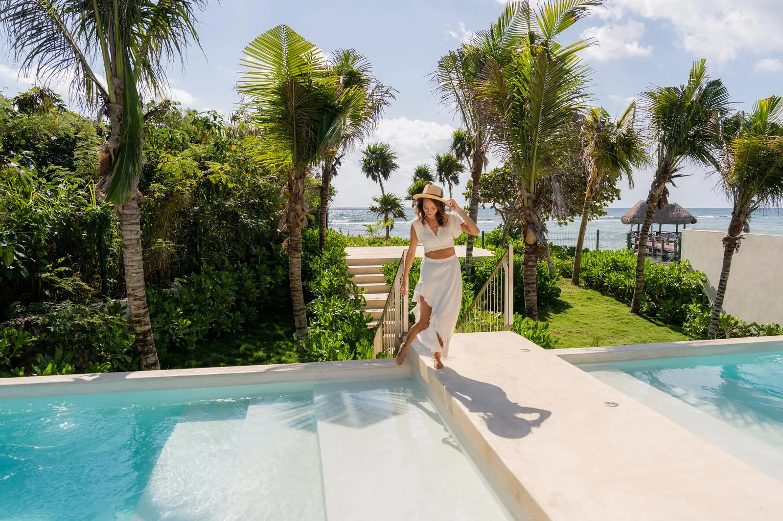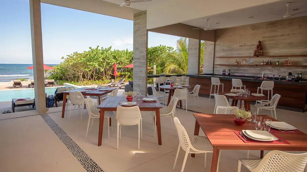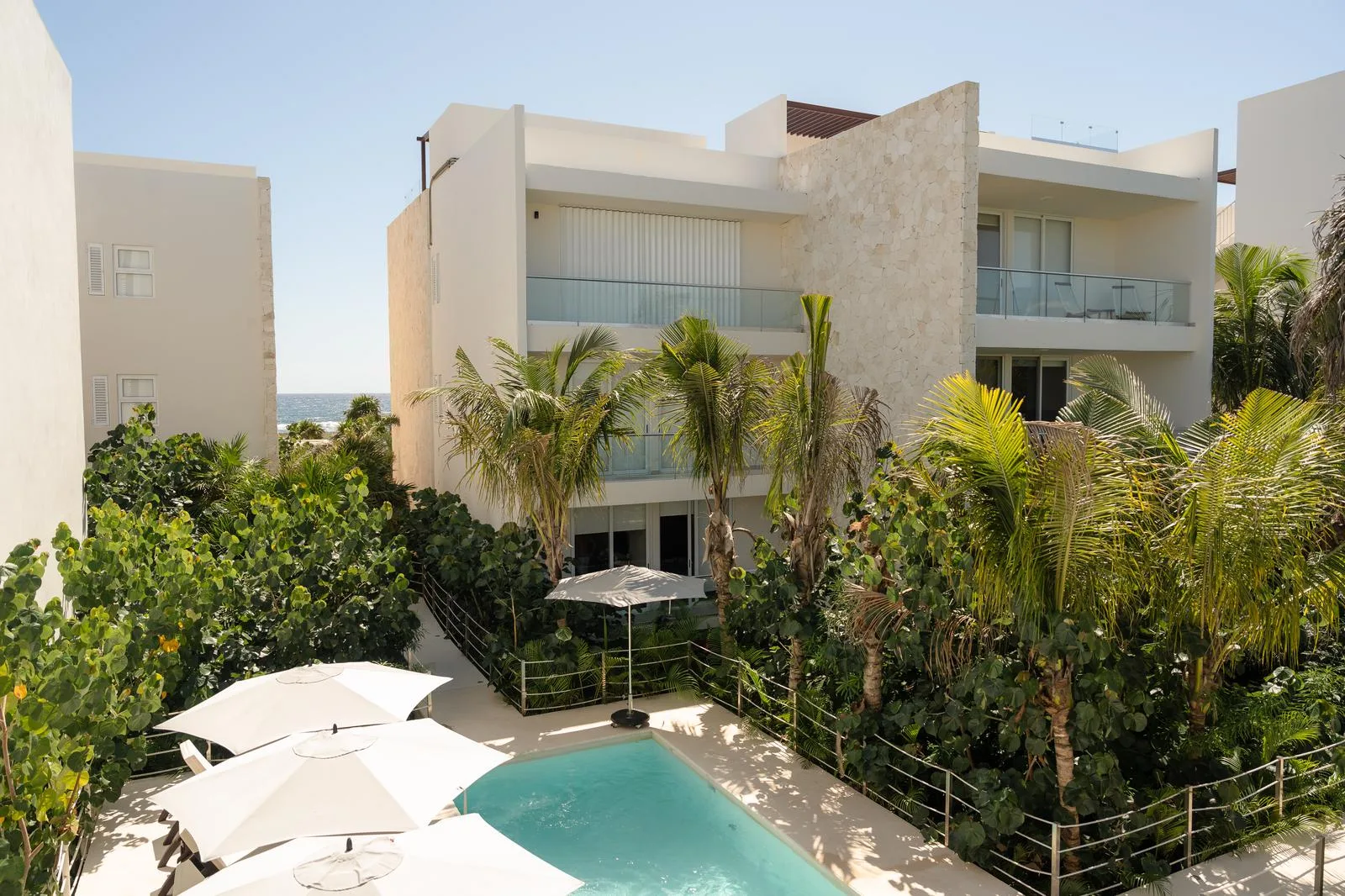 Additional facilities include a yoga studio, a wellness center, and a common rooftop terrace with views of the sea. The Jungle Fish Beach Club restaurant is also part of the property.