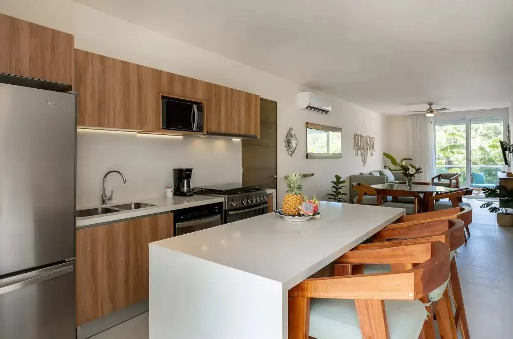 Surrounded by lush nature and just steps from the Caribbean Sea, this fully furnished two-bedroom condo features a dual terrace layout. The thoughtfully designed layout creates excellent indoor and outdoor flow, providing multiple areas to relax and entertain.
