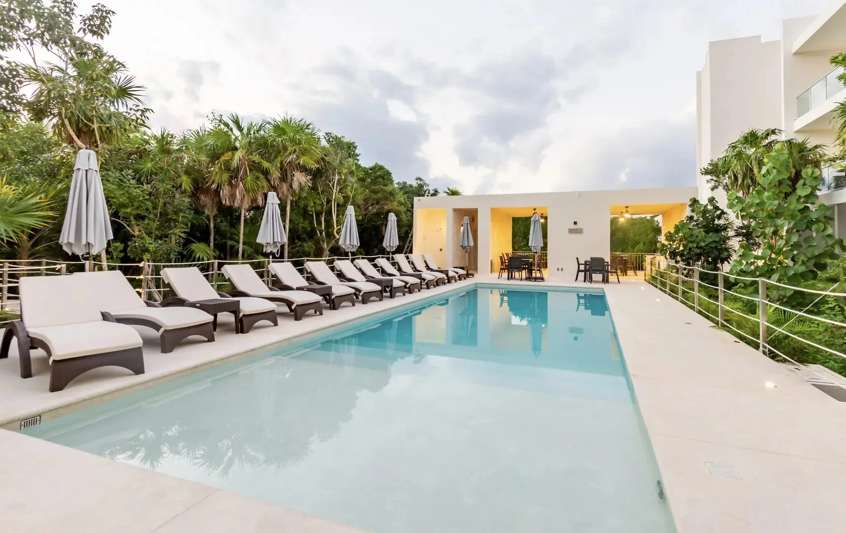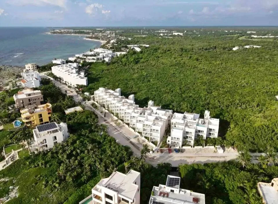 The development, Santamar, comprises 117 units across seven buildings. It is located in Punta Sur Akumal, a short walk from a secluded beach with direct, private access to the Caribbean Ocean. Each building features its own rooftop pool with an ocean view.