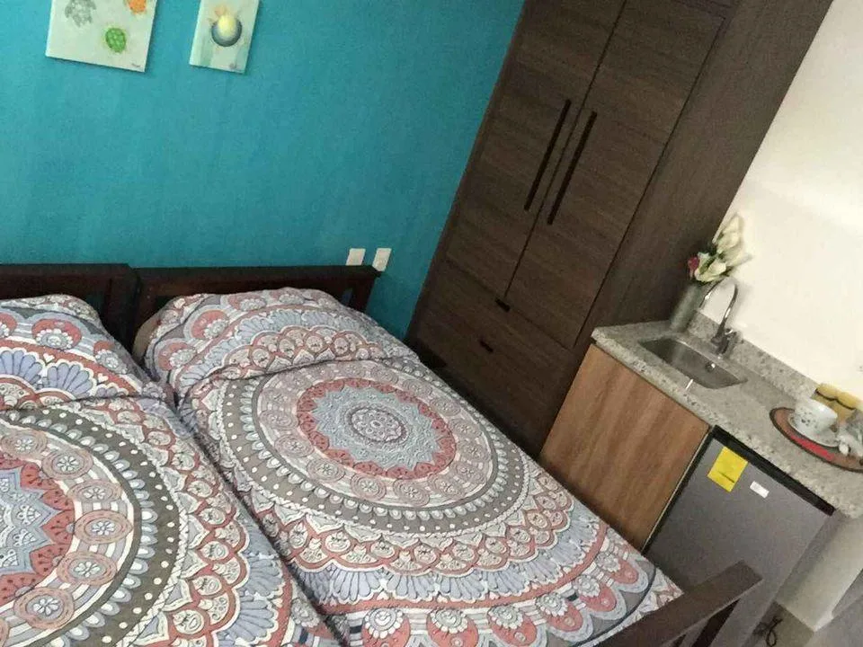 The apartment offers two bedrooms and two full bathrooms within 87 square meters of living space. It features a flexible lock-off design, with one bedroom having a separate, independent entrance. The integrated kitchen includes a quartz countertop bar. The living and dining area is spacious. A private terrace is equipped with mosquito screens. The unit includes air conditioning, ceiling fans, and is fully furnished and equipped. Parking is provided for one vehicle.
