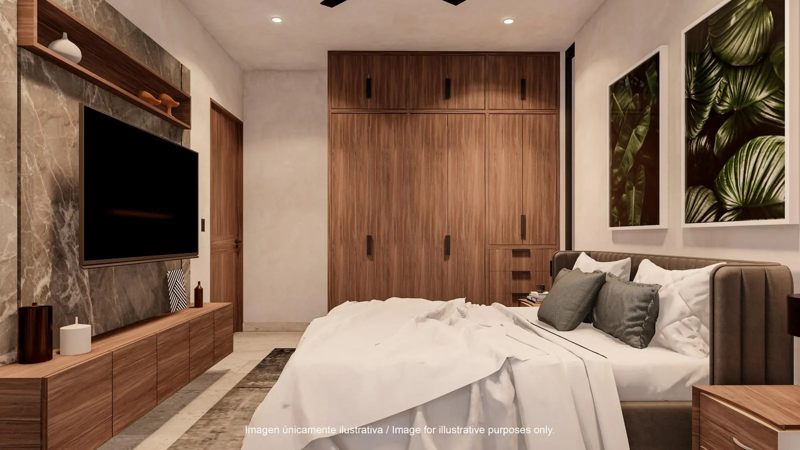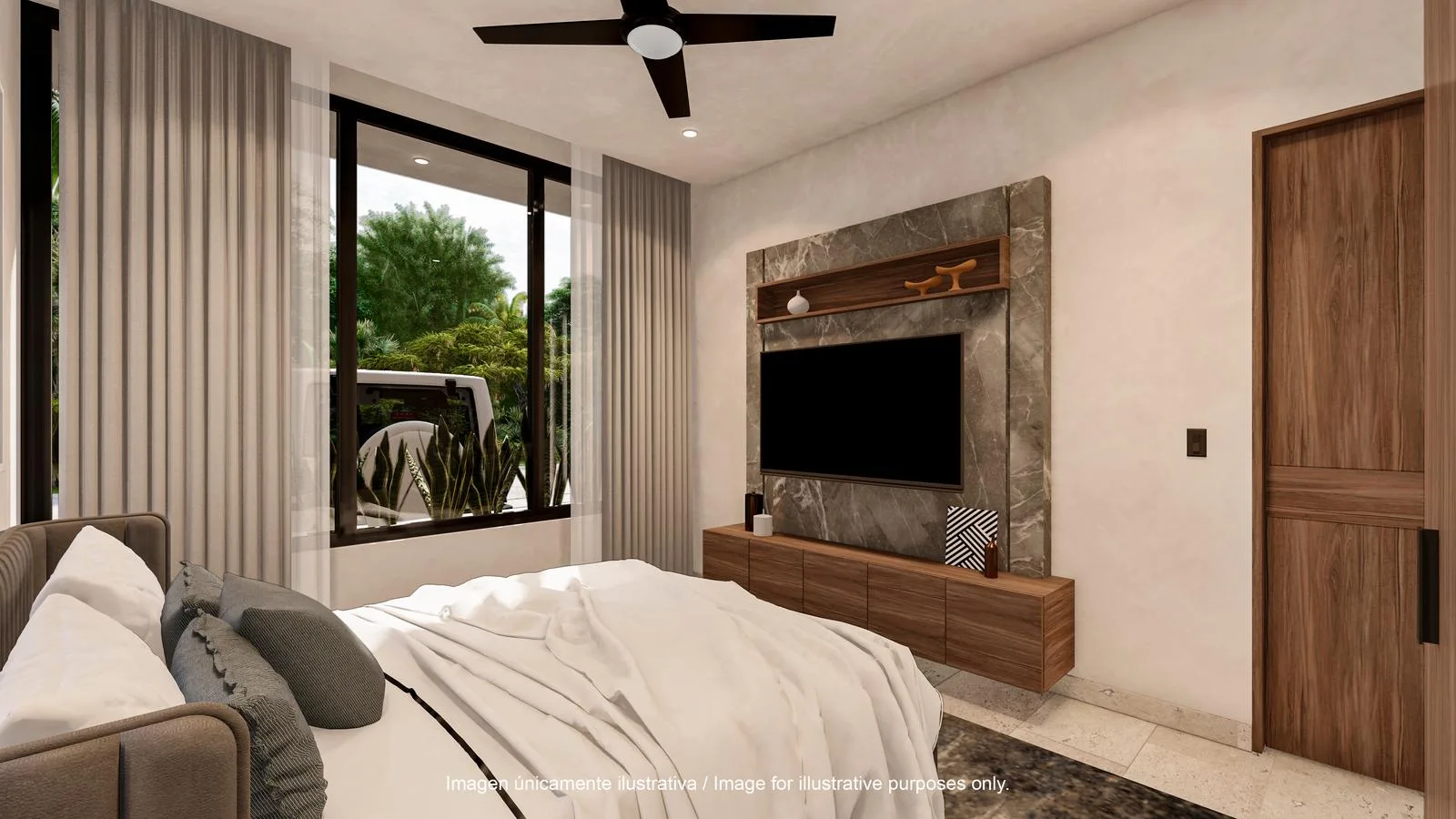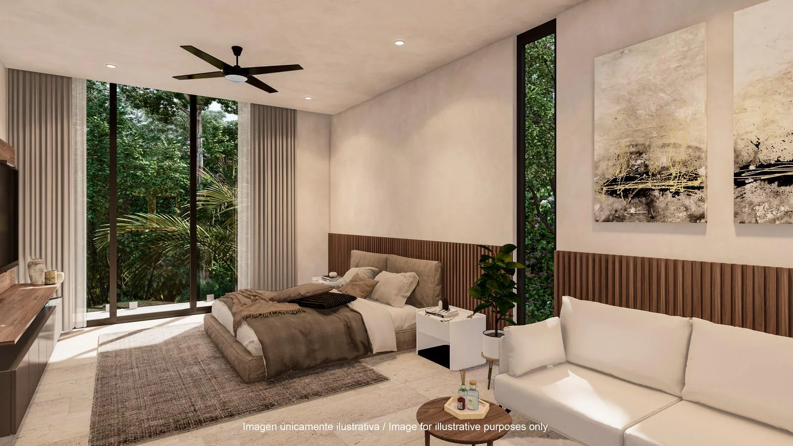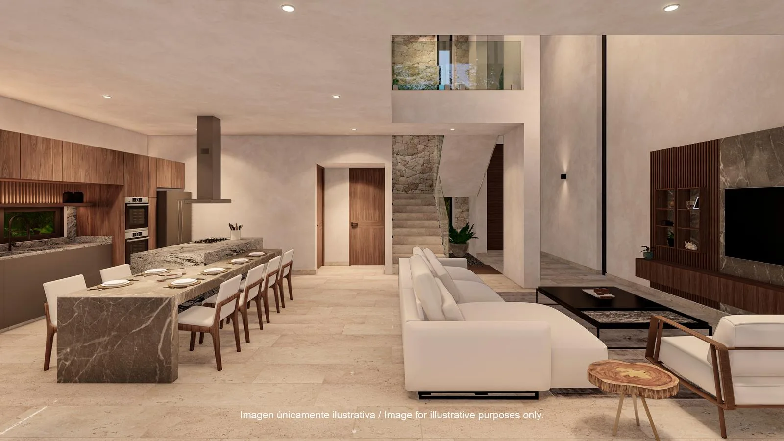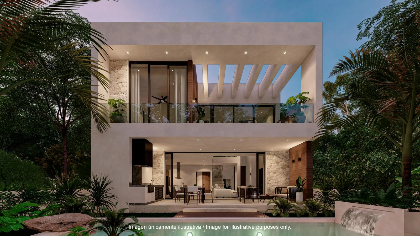 This 3-bedroom house features double-height ceilings and is located in the Country Club residential area. The property offers access to a private beach club and a golf course.