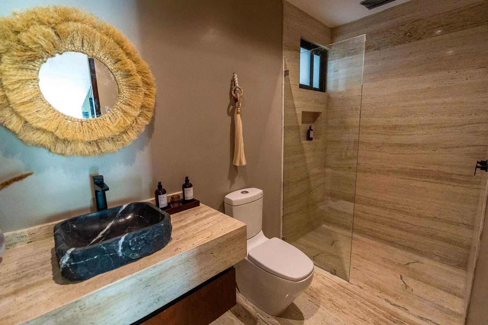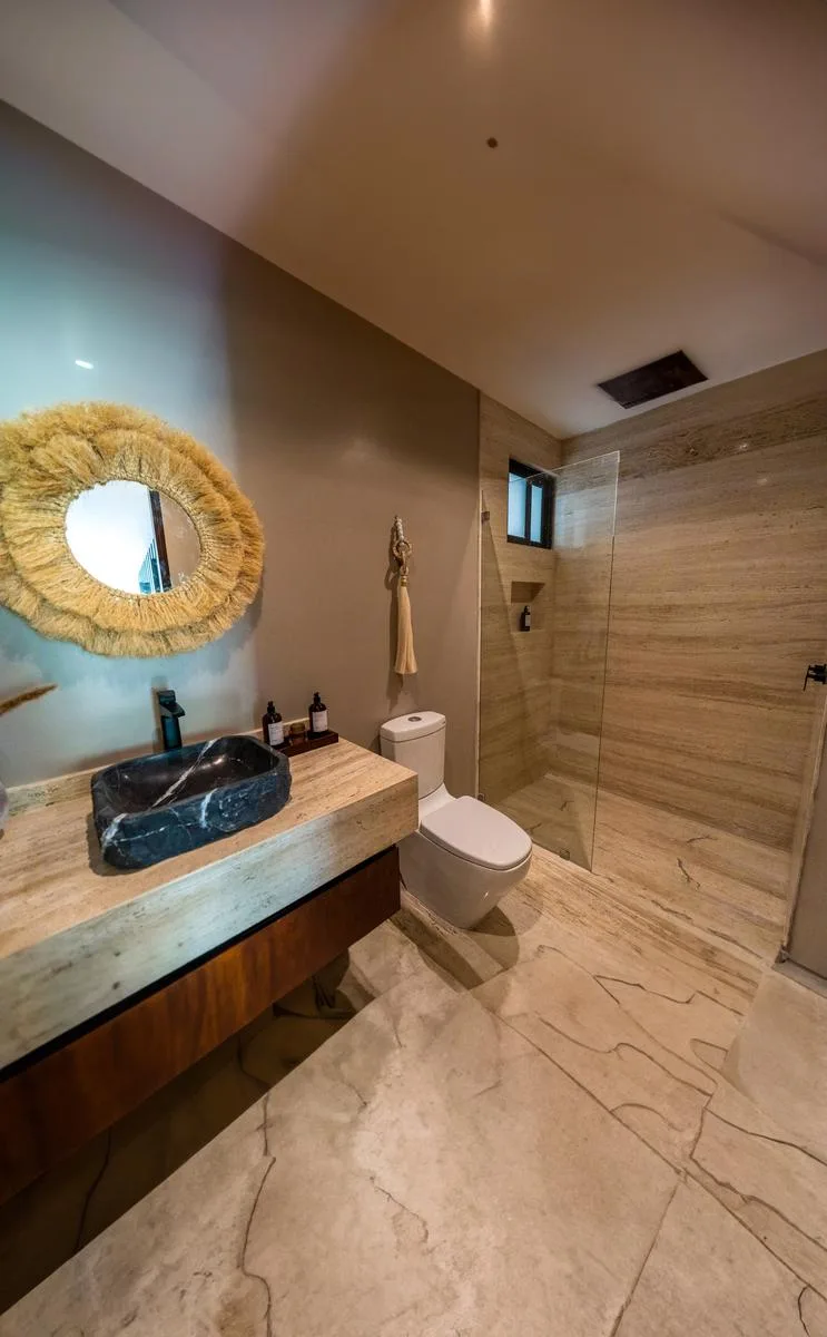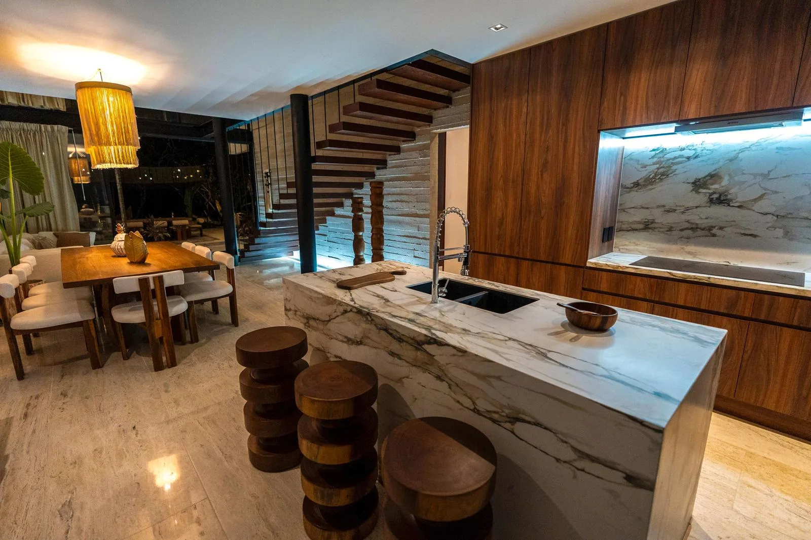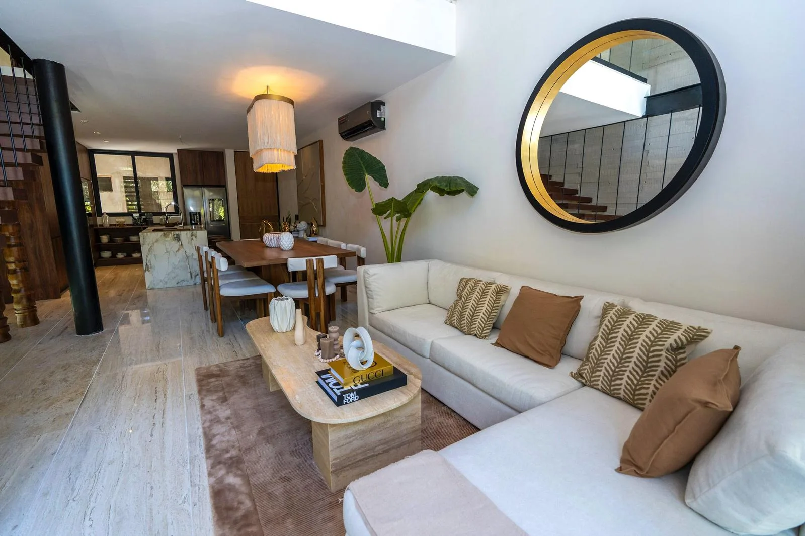 This exclusive three-bedroom house features a private pool and is located within the Country Club residential development in Tulum. The home offers a lifestyle of luxury, comfort, and harmony with nature without compromising high-level amenities or its prime location near the sea.