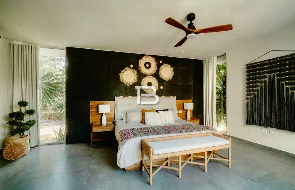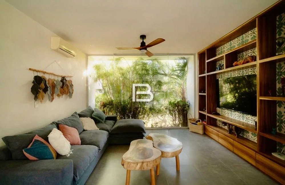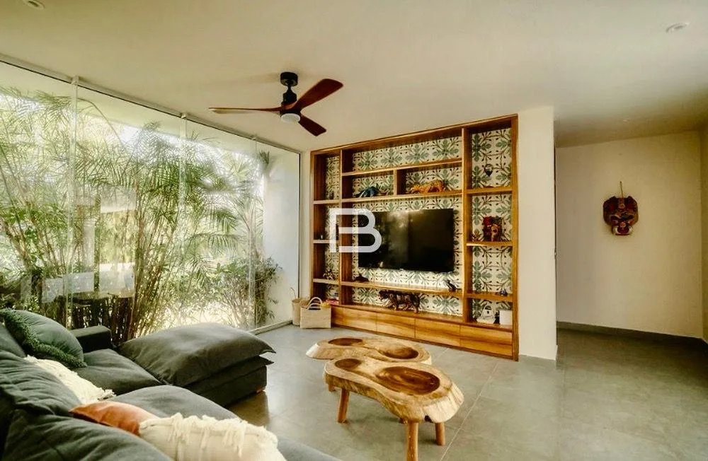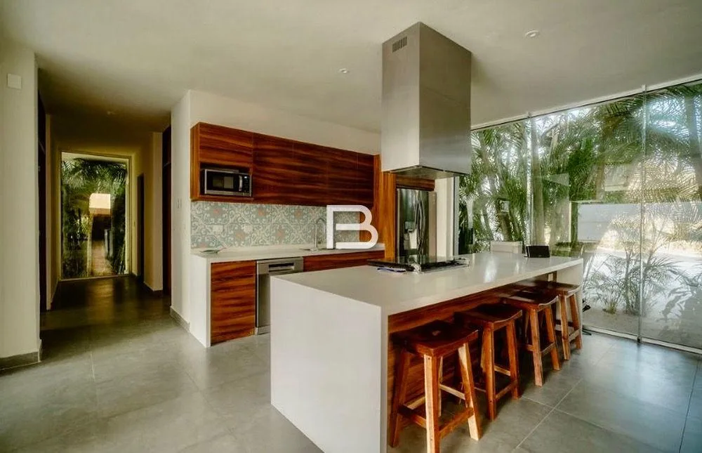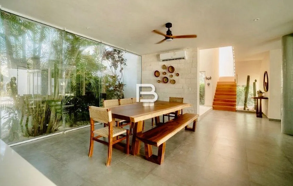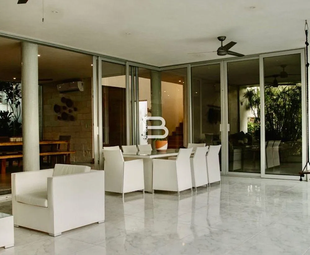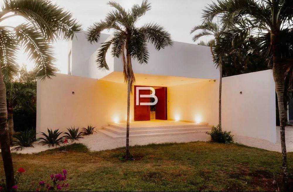 This house is situated in Akumal on a 1, 350 square meter plot. It is located approximately 150 meters from the Yalku cenote within a residential area characterized by large properties.
