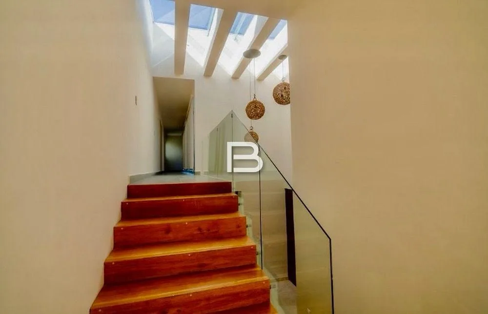 The upper floor comprises two large bedrooms, each with capacity for three beds, a full bathroom, and access to a private terrace. This level also includes a TV room and leads to a spacious rooftop offering spectacular views.