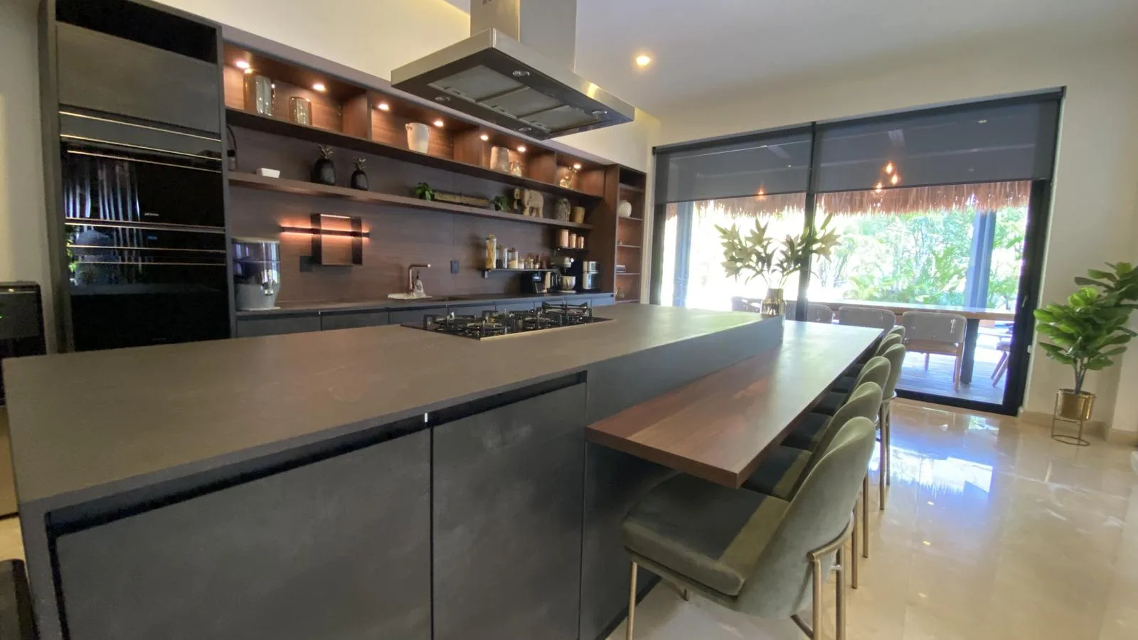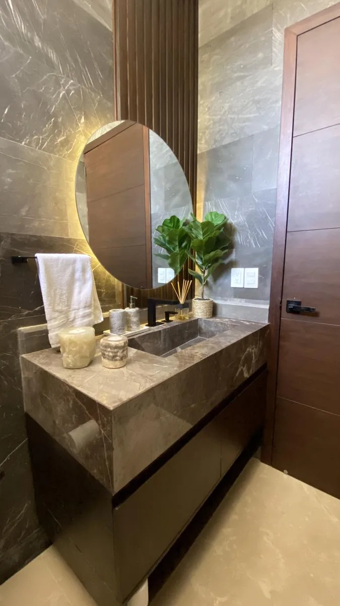 This impressive 645 square meter residence is designed with high-end finishes, including a German kitchen, Italian appliances, Spanish marble, and Helvex fixtures. The property features five bedrooms, four full bathrooms, and two half bathrooms. It includes a private pool, a gym, and a home office.