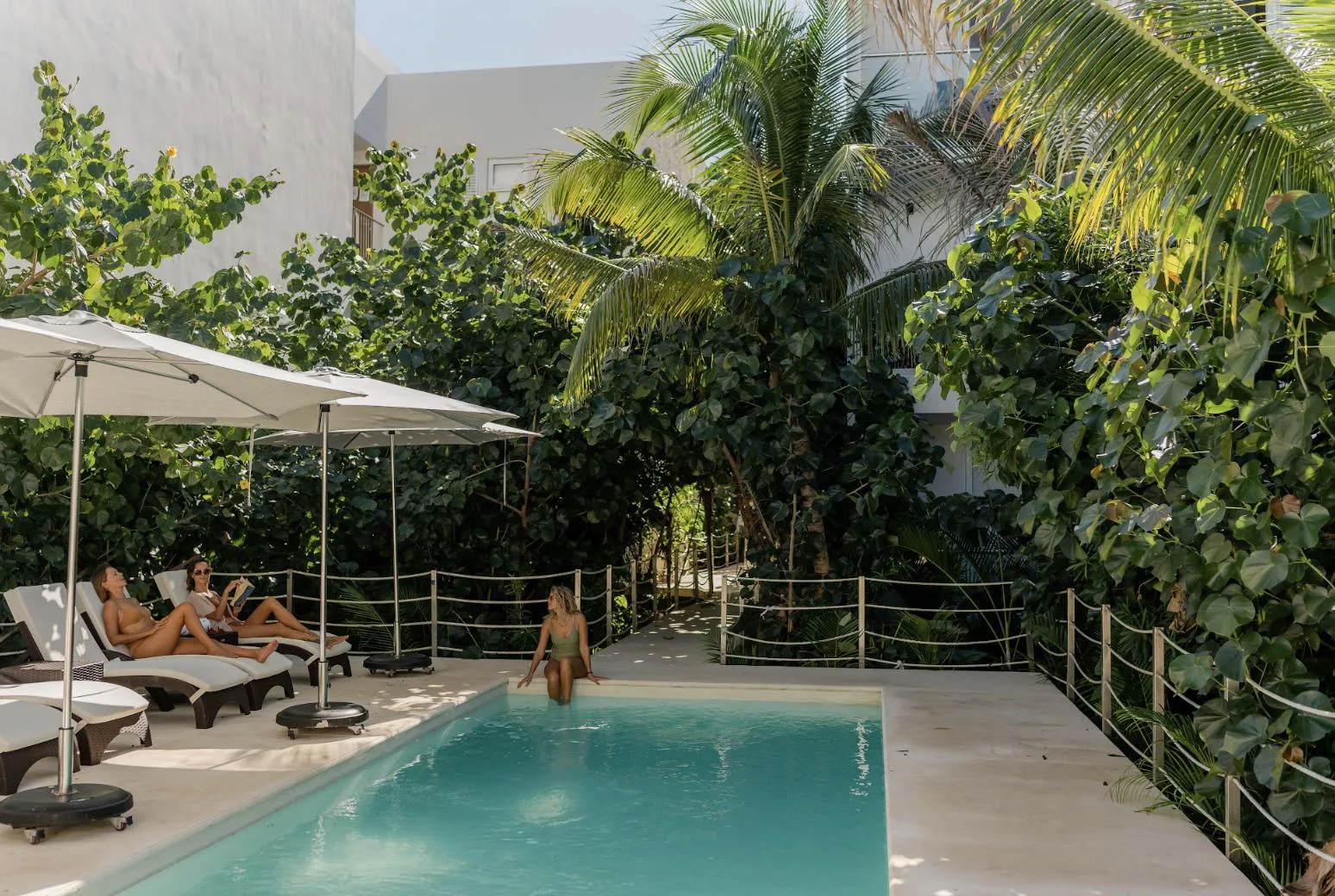 This home offers a life surrounded by jungle and sea. It is a two-bedroom residence spanning 92 square meters, located just steps from a hidden white sand beach.