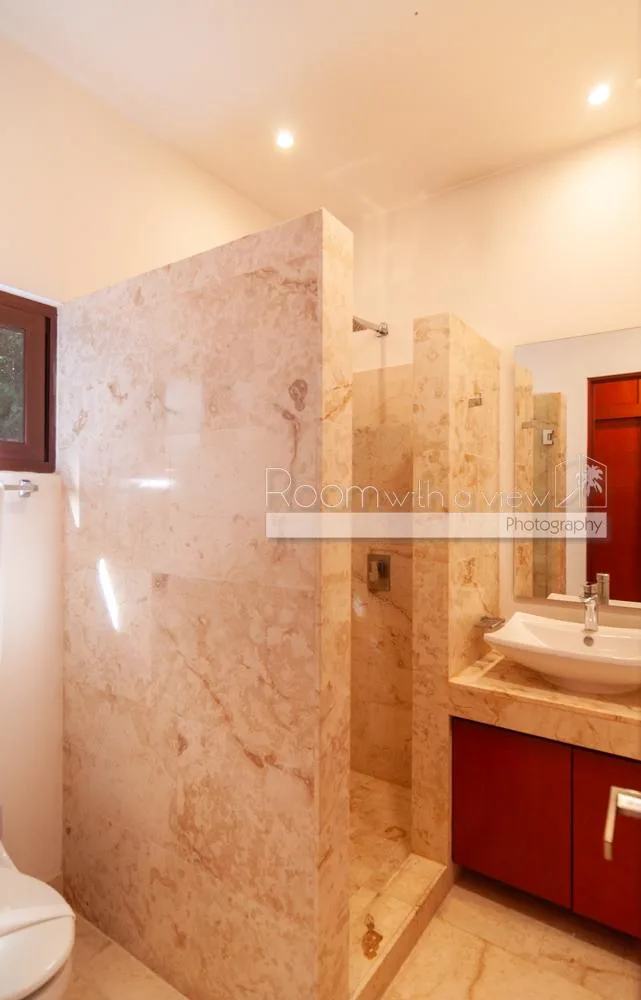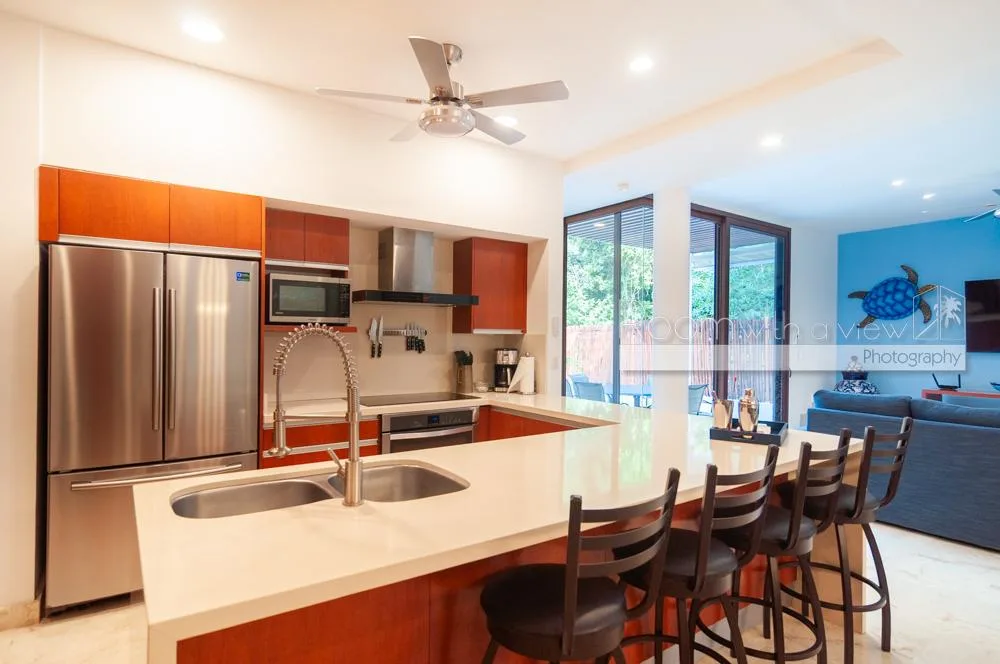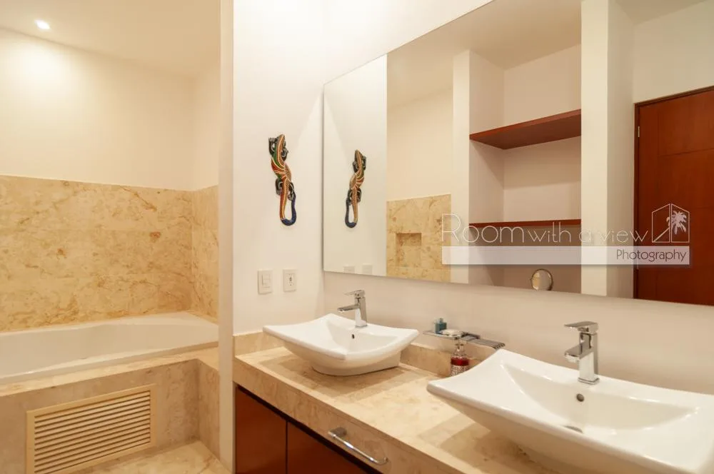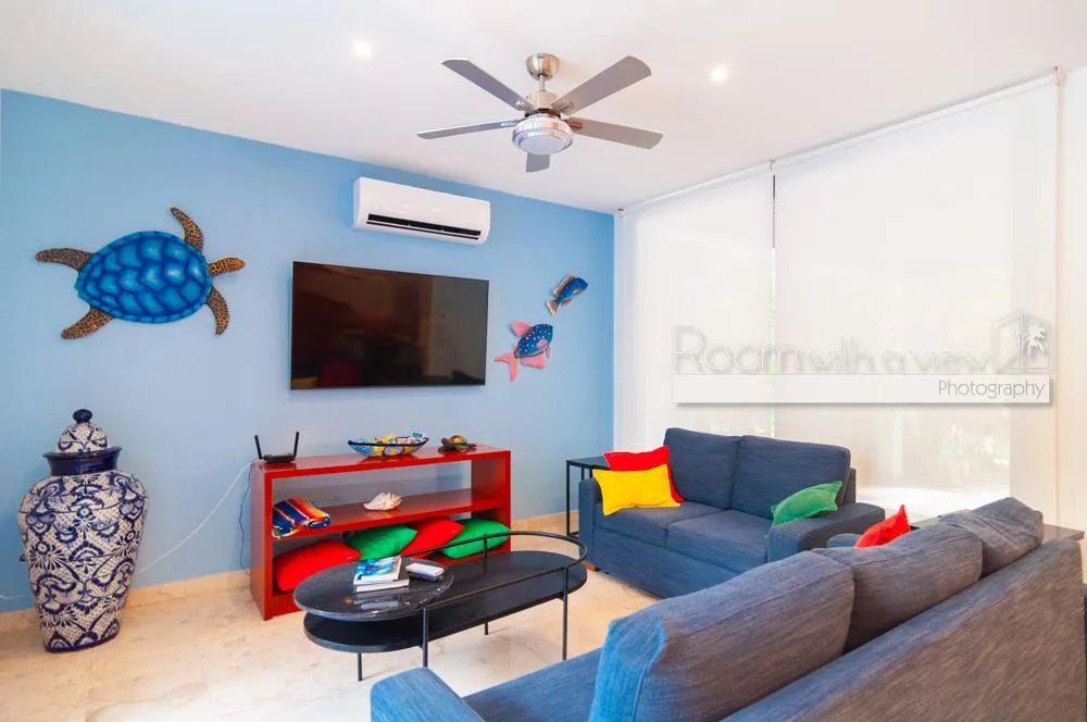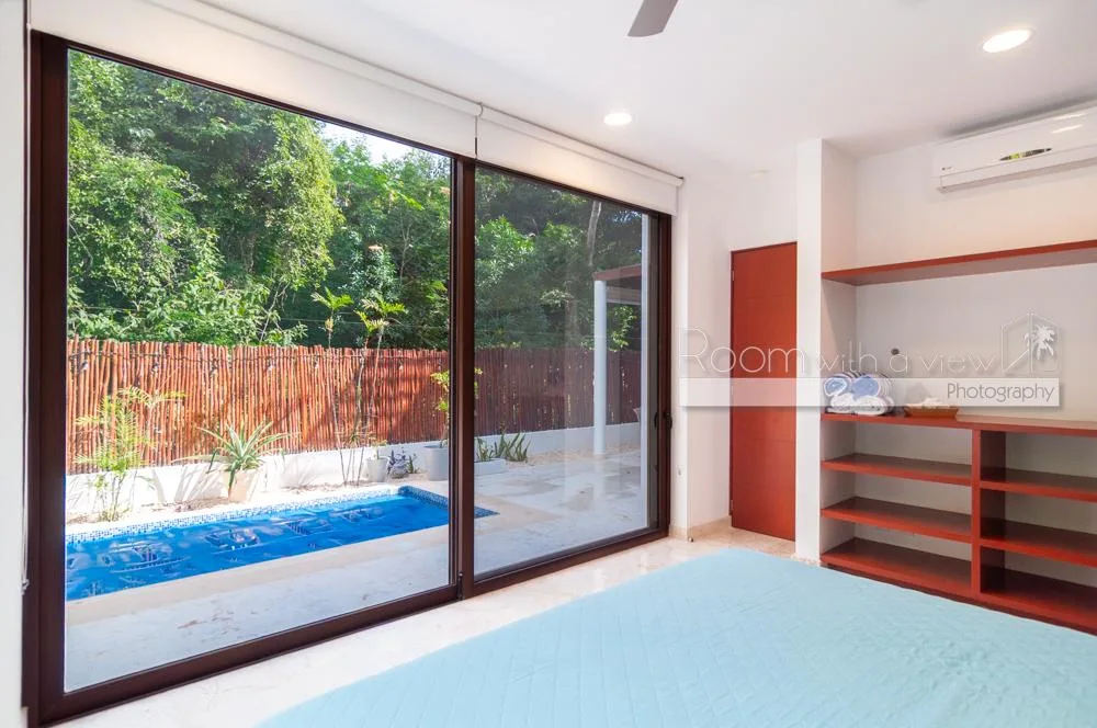The property is located within Tulum Country Club in Akumal, a low-density gated community surrounded by lush jungle and minutes from the Caribbean coast. The community offers a pool, a gym, and family-friendly spaces. Residents have access to golf and beach club privileges.