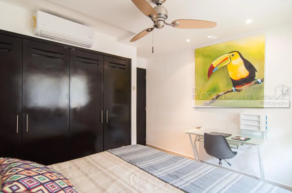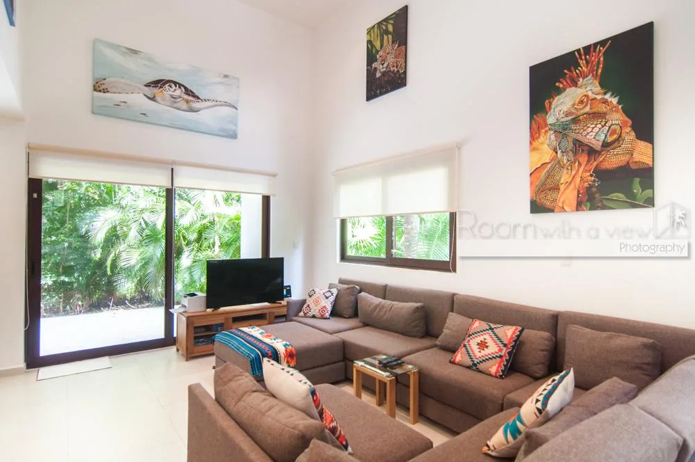 The residence is part of an association of 46 homes which provides security, maintenance, and landscaped common areas. Beach access is available through a beach club, which features a private section of loungers by a pool. A short stroll along the shore leads to the town of Akumal, which is home to dive centers, a grocery store, and various restaurants and cafes with live music.
