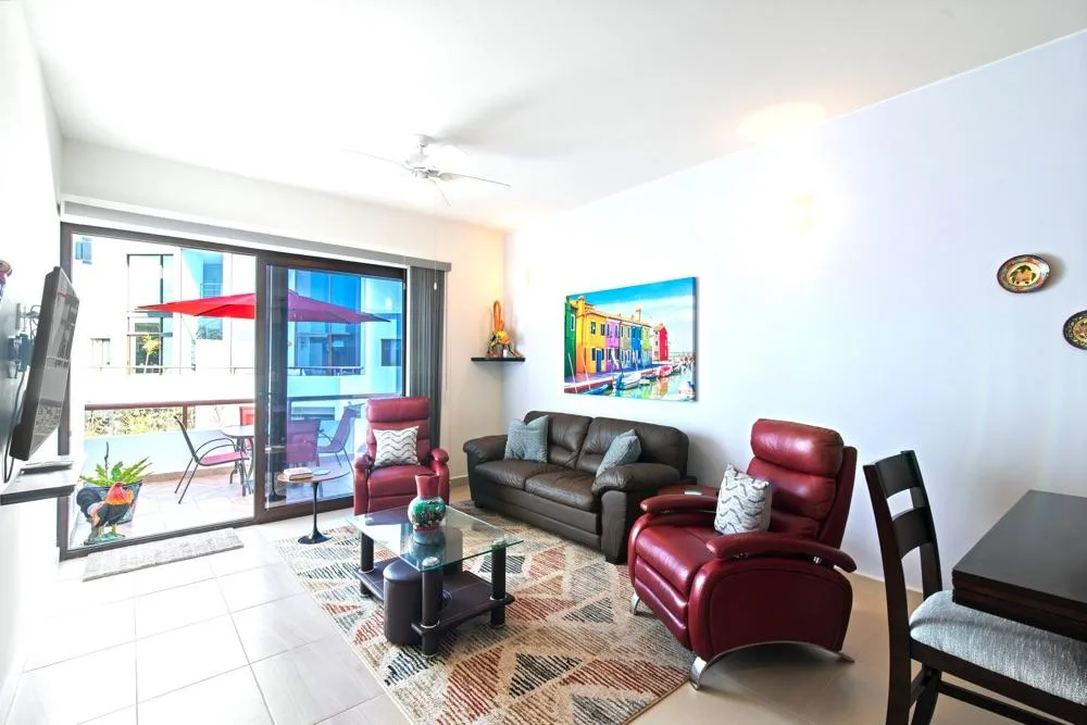 The residential complex offers amenities including two pools and a fitness center. There is access to a 27-hole golf course. Additional benefits include a shuttle service to the beach and preferential beach club access.