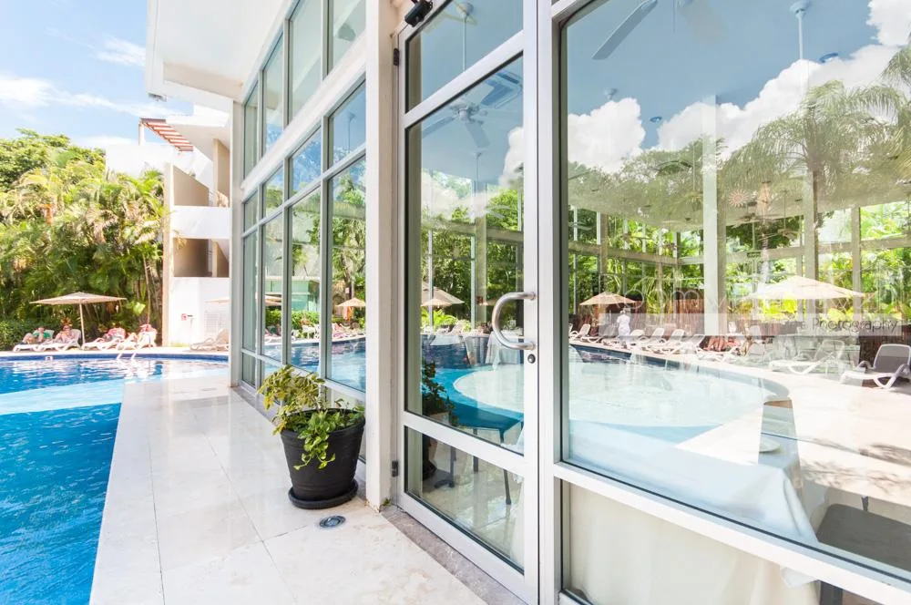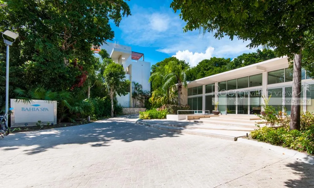 This sun-filled penthouse condominium is located on the top floor of a hotel within the gated Tulum Country Club resort community. The property is situated within a 717-acre residential resort surrounded by golf and is minutes from the Caribbean coast. The complex is located in the Riviera Maya, approximately halfway between Playa del Carmen and Tulum.