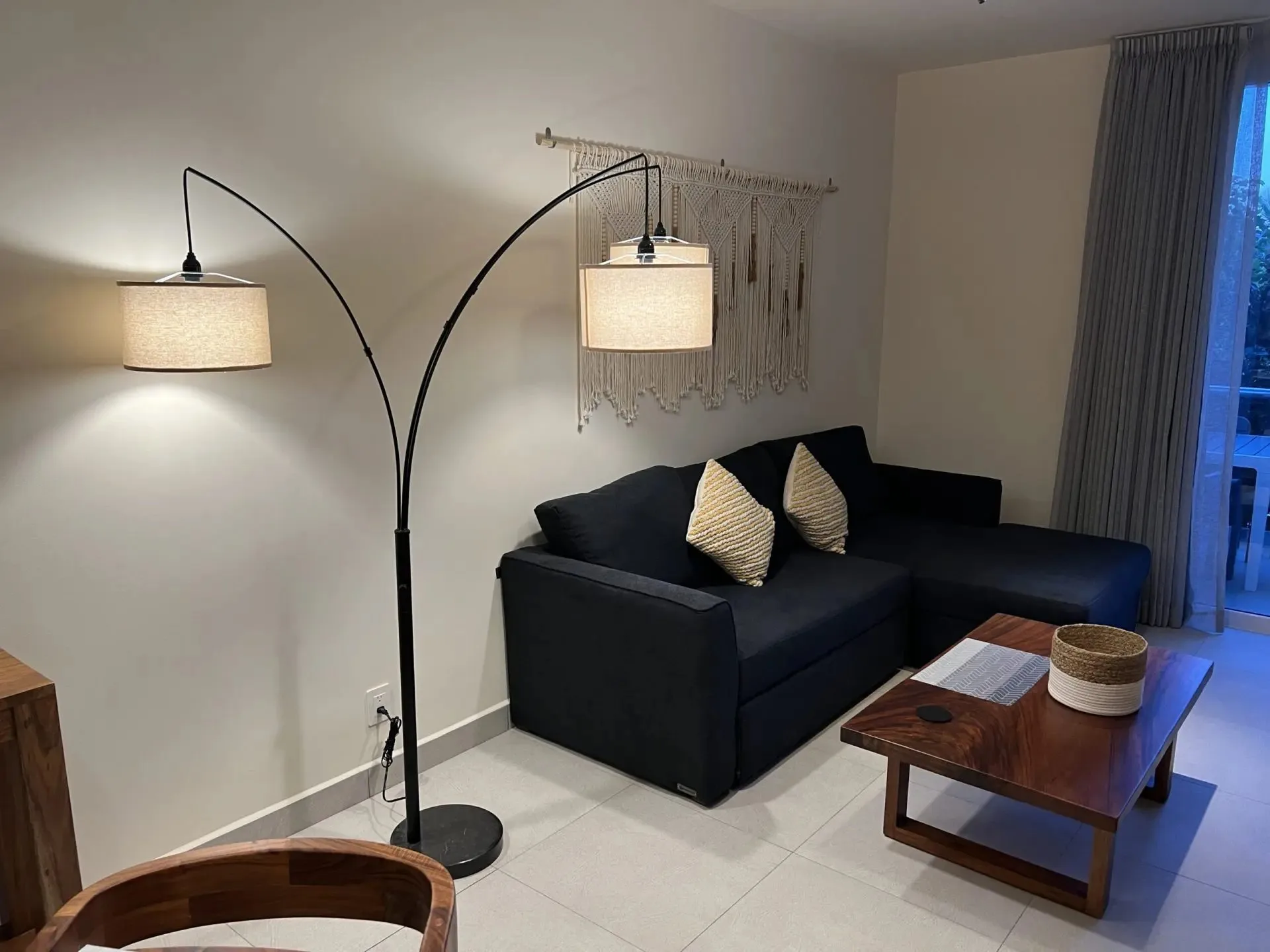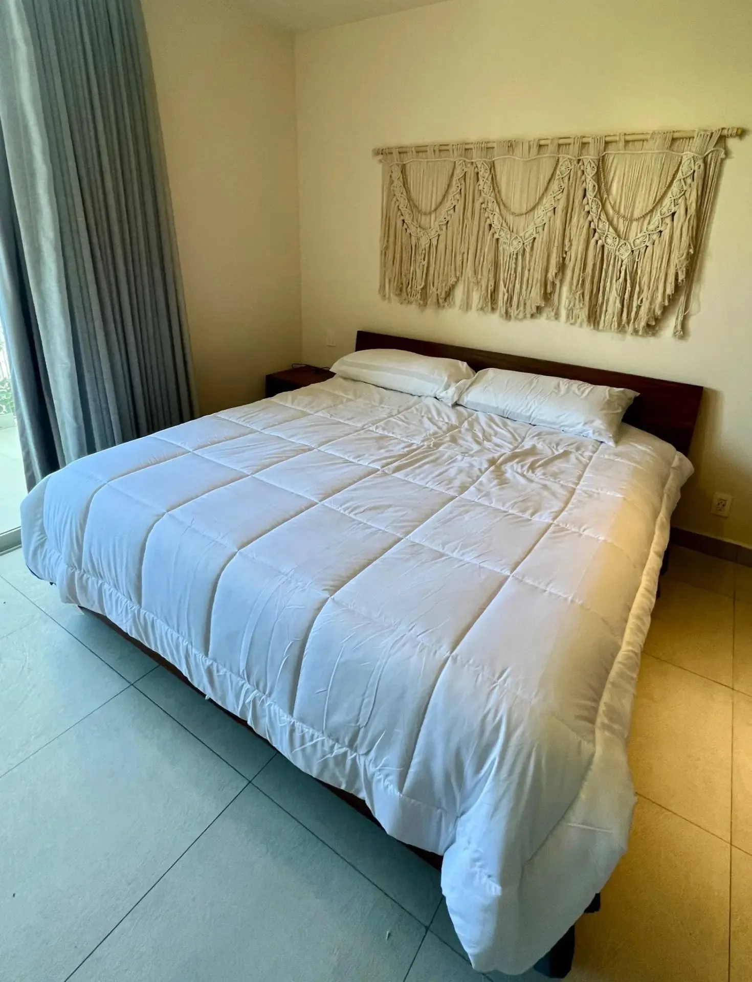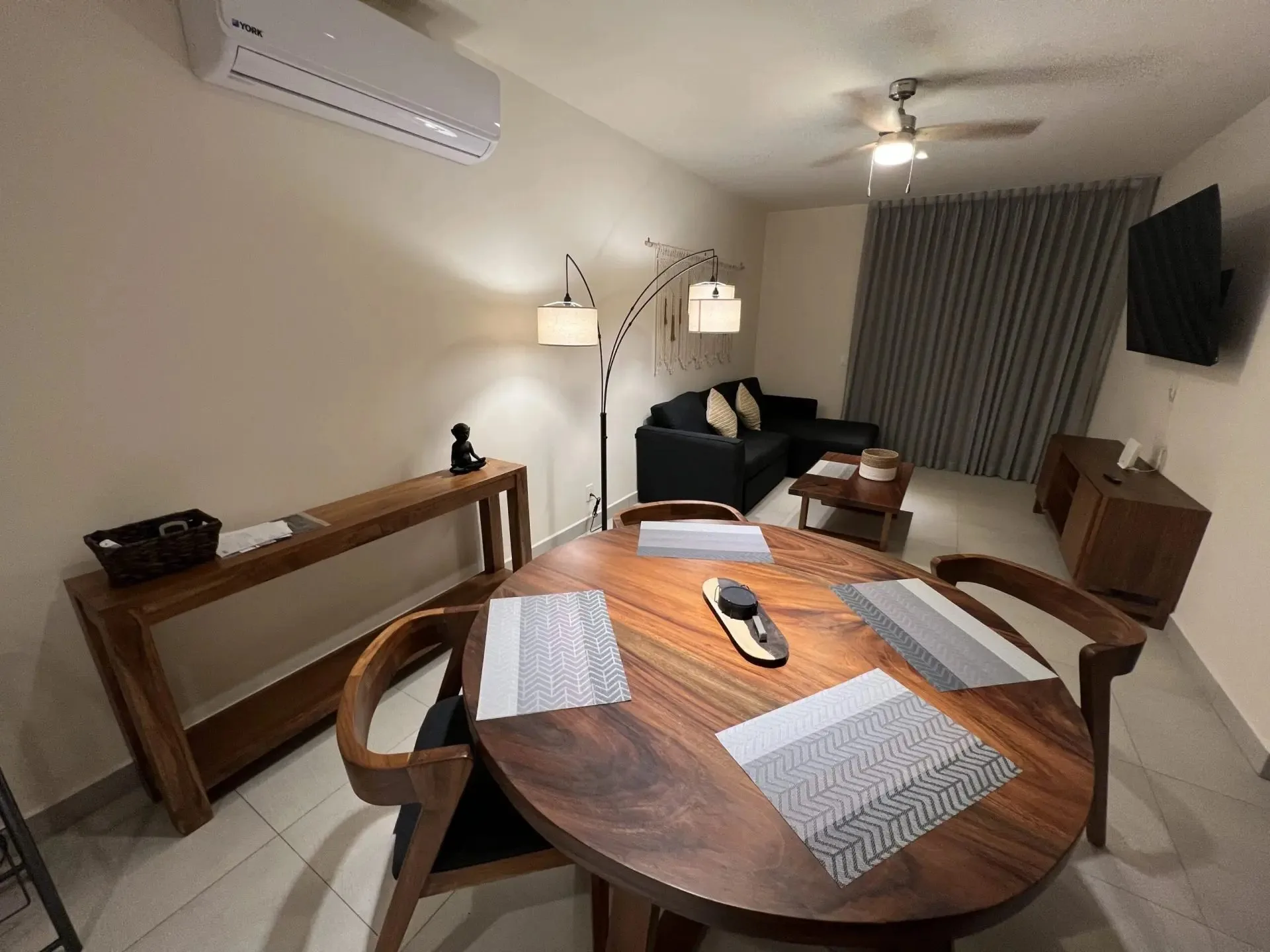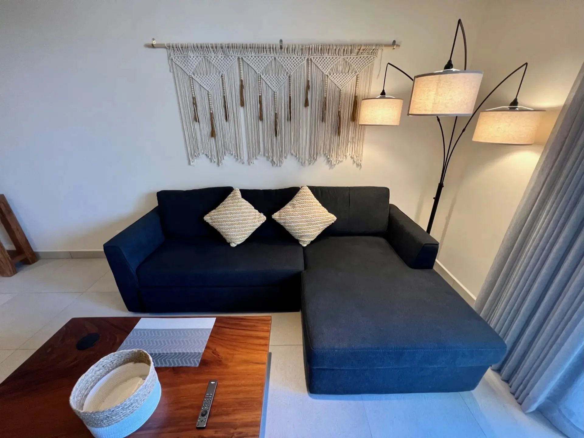 This completely finished resale condominium is located on the rooftop of the Ocean View building in Santamar. It has been professionally decorated with custom, handcrafted local wood furniture tailored to the unit. The view overlooks the vegetation from the garden unit below, providing peace and privacy. Being on the second floor allows for pleasant sea breezes. The unit benefits from natural cross-ventilation as it is situated only one row back from the sea within the exclusive Punta Sur community, which is opposite multi-million dollar homes and estates.