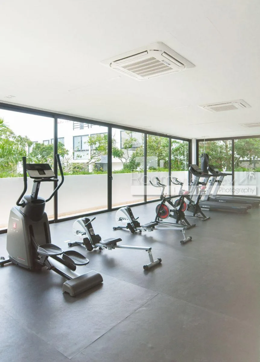 A large community pool and lounge area is located on the ground floor. The penthouse has tile floors and durable, easy-to-maintain finishes. It is fully furnished and equipped with ceiling fans and air conditioning.