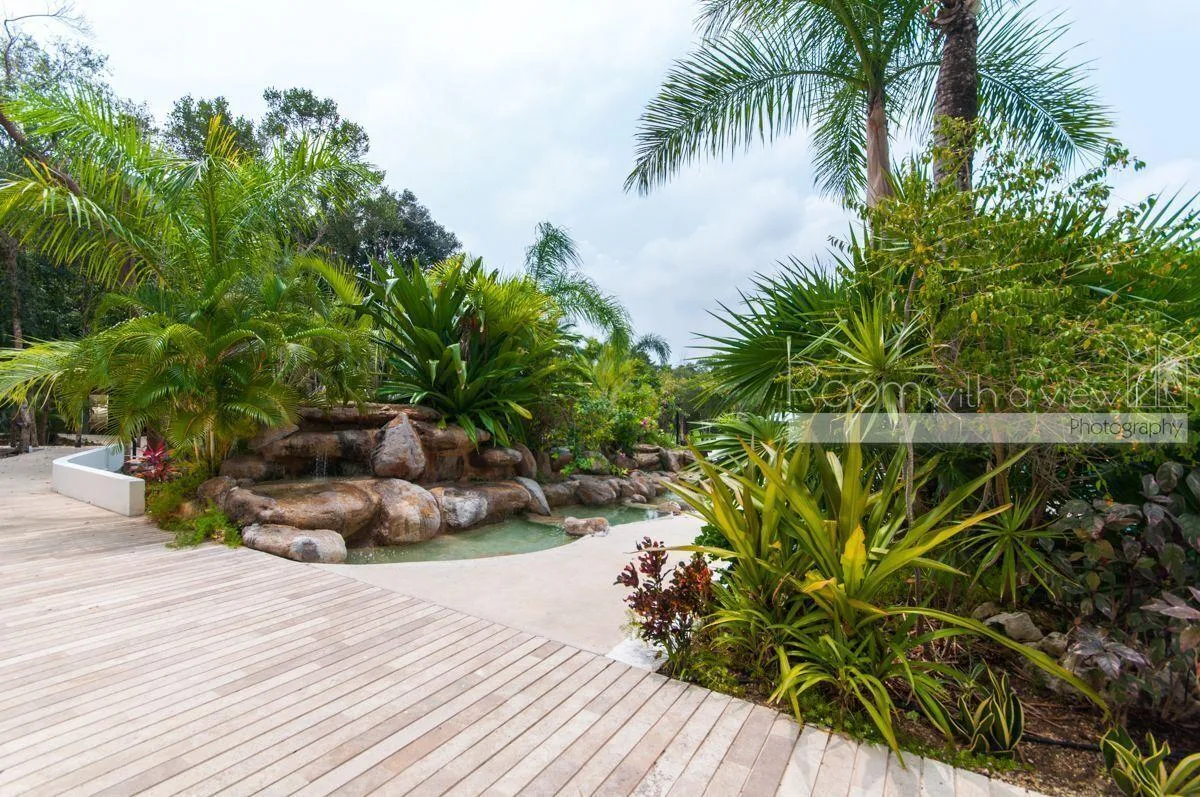 Residents have access to the resort's amenities, including a 27-hole golf course. There is shuttle service to Kay Beach and access to the Jungle Fish Beach Club.