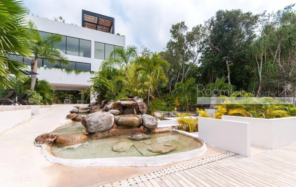 The penthouse is located in Anah Village within Akumal. It is situated within a 717-acre residential resort near a golf course and minutes from the Caribbean coast. The Tulum Country Club area is in the Riviera Maya, approximately halfway between Playa del Carmen and Tulum, and about 50 miles south of Cancun International Airport.
