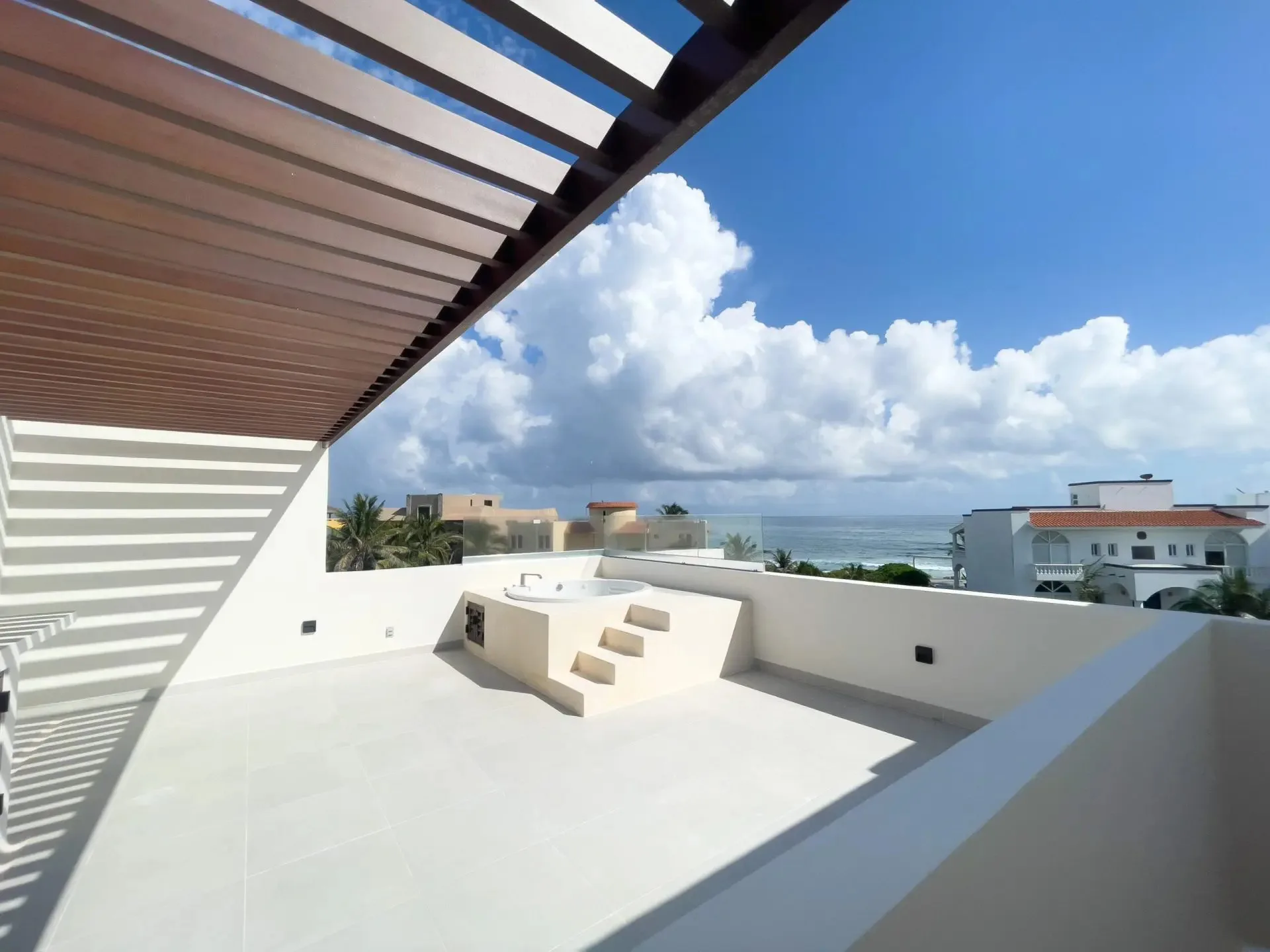 The residence includes a private rooftop terrace with a jacuzzi tub and sweeping ocean views. The condo is sold fully furnished and tastefully decorated.