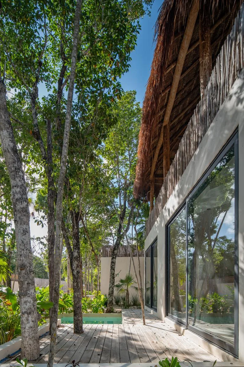 The residential community offers a range of amenities, including a clubhouse with spaces for socializing and recreation. A natural cenote is located within the development. Additional community features consist of a shared swimming pool, a temazcal for wellness experiences, and carefully designed green areas that foster a connection with nature.